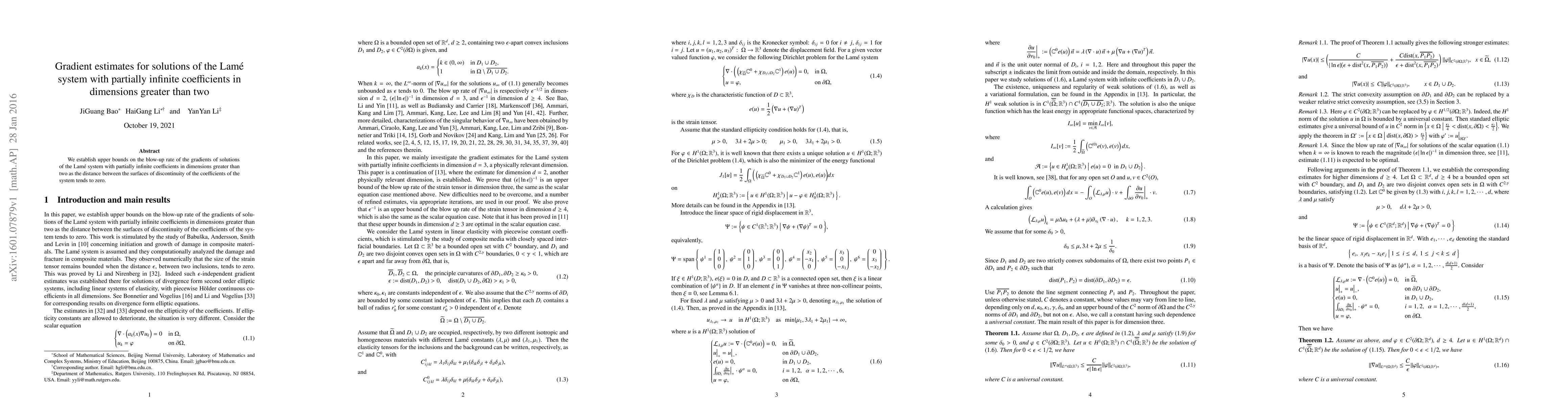 Summary: This paper provides upper bounds on the gradient blow-up rate for solutions of the Lamé system with partially infinite coefficients in dimensions greater than two, as the distance between the discontinuity surfaces of the coefficients approaches zero. The findings contribute to understanding the behavior of solutions near coefficient discontinuities.
