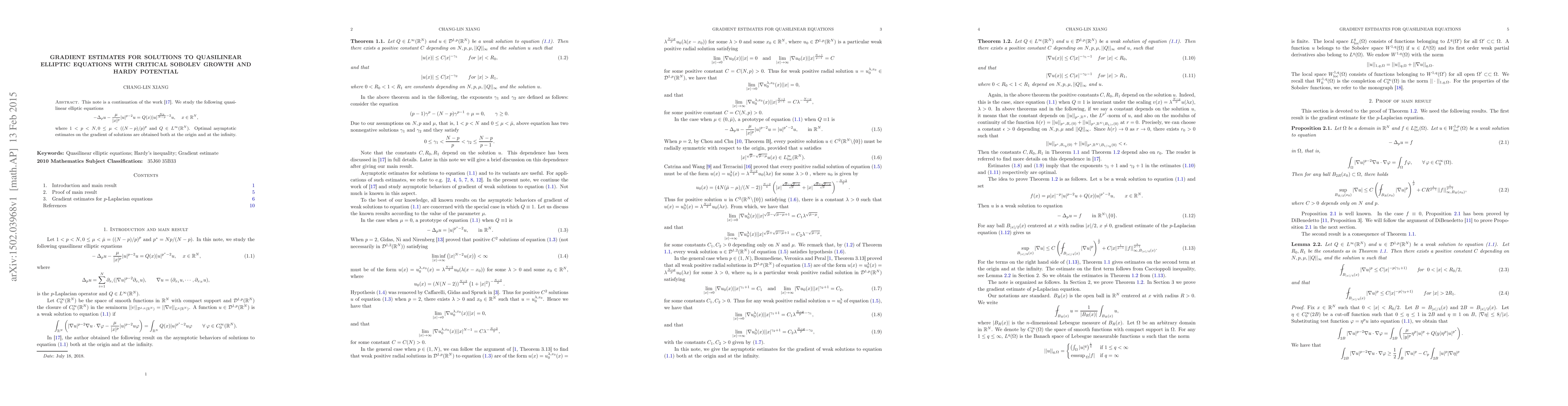 This paper extends previous research to derive optimal gradient estimates for solutions to quasilinear elliptic equations with critical Sobolev growth and Hardy potential, providing asymptotic estimates both at the origin and at infinity.