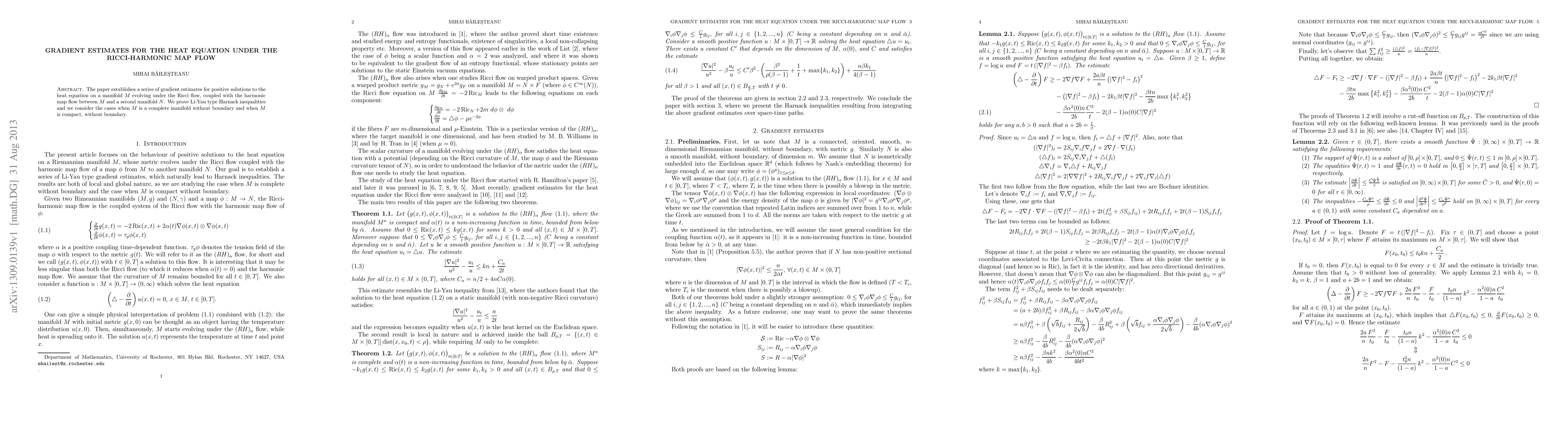 The paper provides gradient estimates for positive heat equation solutions on a manifold evolving under Ricci-Harmonic Map flow, proving Li-Yau type Harnack inequalities for both complete and compact manifolds without boundary.