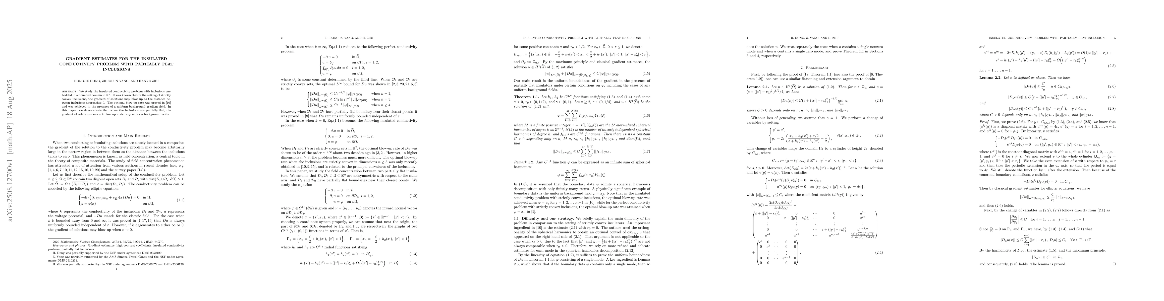 We study the insulated conductivity problem with inclusions embedded in a bounded domain in $\mathbb{R}^n$. It was known that in the setting of strictly convex inclusions, the gradient of solutions may blow up as the distance between inclusions approaches 0. The optimal blow-up rate was proved in [10] and was achieved in the presence of a uniform background gradient field. In this paper, we demonstrate that when the inclusions are partially flat, the gradient of solutions does not blow up under any uniform background fields.
