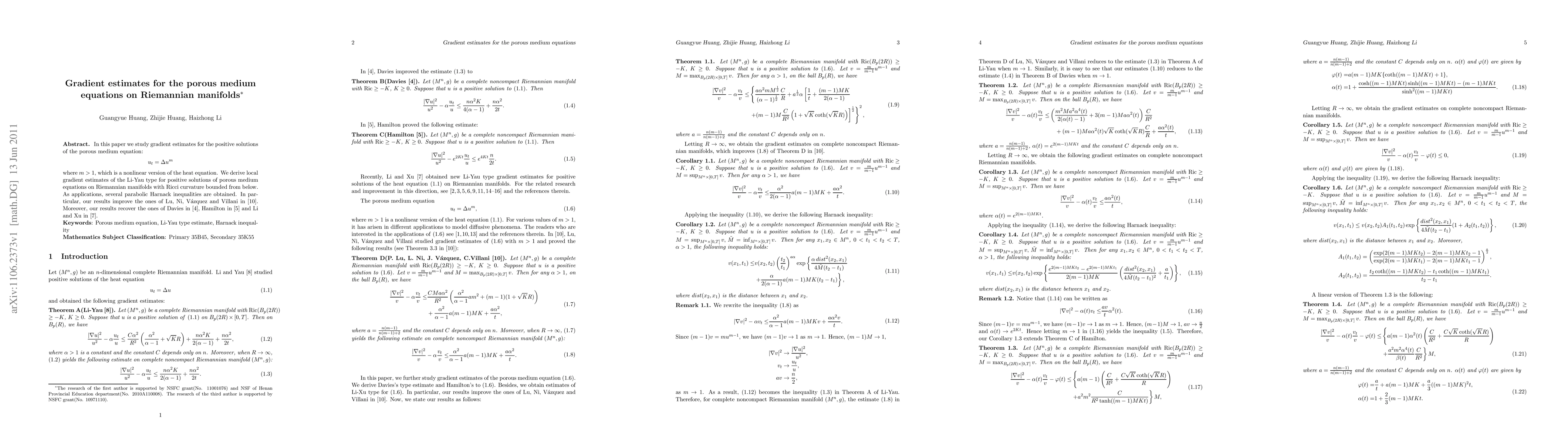 This paper derives local gradient estimates for positive solutions of the porous medium equation on Riemannian manifolds with bounded Ricci curvature, improving upon previous results by Lu, Ni, Vázquez, Villani, Davies, Hamilton, and Li and Xu. The findings also yield several parabolic Harnack inequalities.