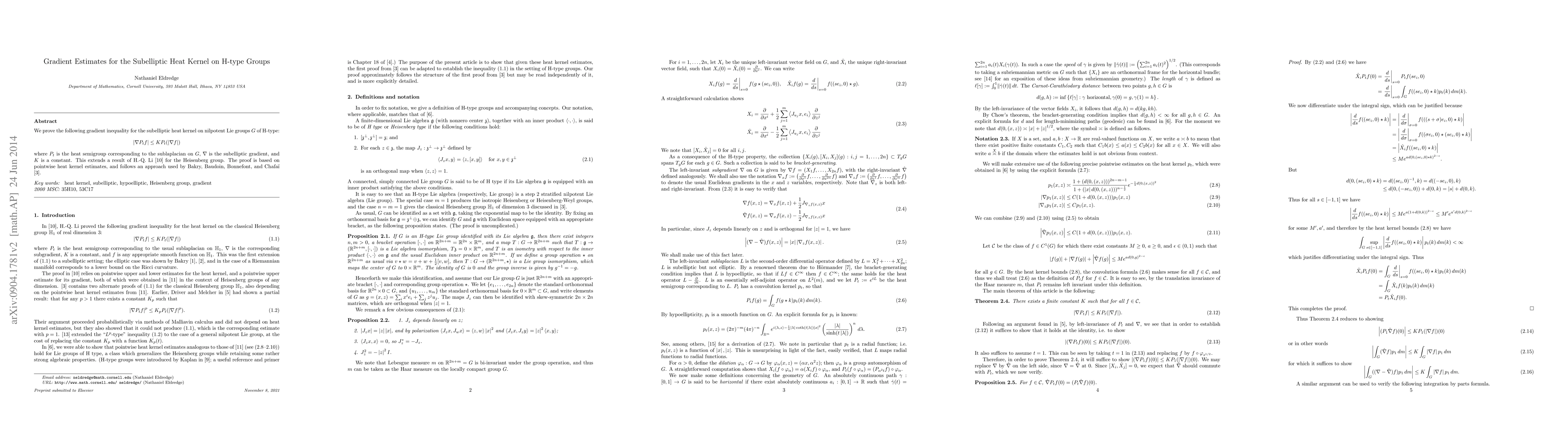 We prove the following gradient inequality for the subelliptic heat kernel on nilpotent Lie groups $G$ of H-type: $$|\nabla P_t f| \le K P_t(|\nabla f|)$$ where $P_t$ is the heat semigroup corresponding to the sublaplacian on $G$, $\nabla$ is the subelliptic gradient, and $K$ is a constant. This extends a result of H.-Q. Li for the Heisenberg group. The proof is based on pointwise heat kernel estimates, and follows an approach used by Bakry, Baudoin, Bonnefont, and Chafa\"i.