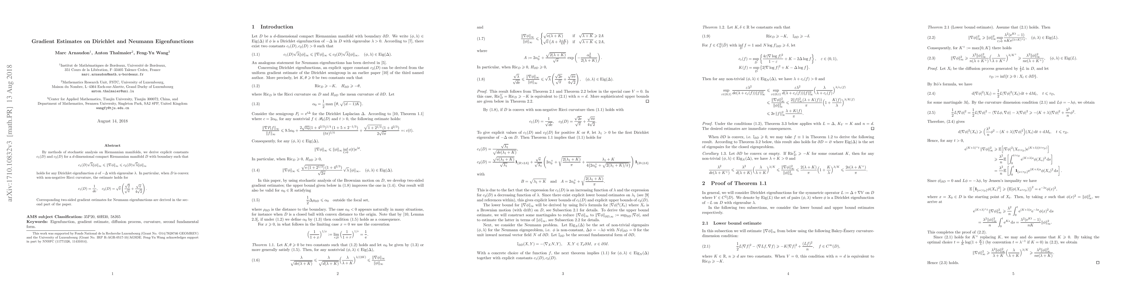 This paper derives explicit constants for estimating gradients of Dirichlet eigenfunctions on compact Riemannian manifolds, with applications in understanding the behavior of solutions to differential equations.