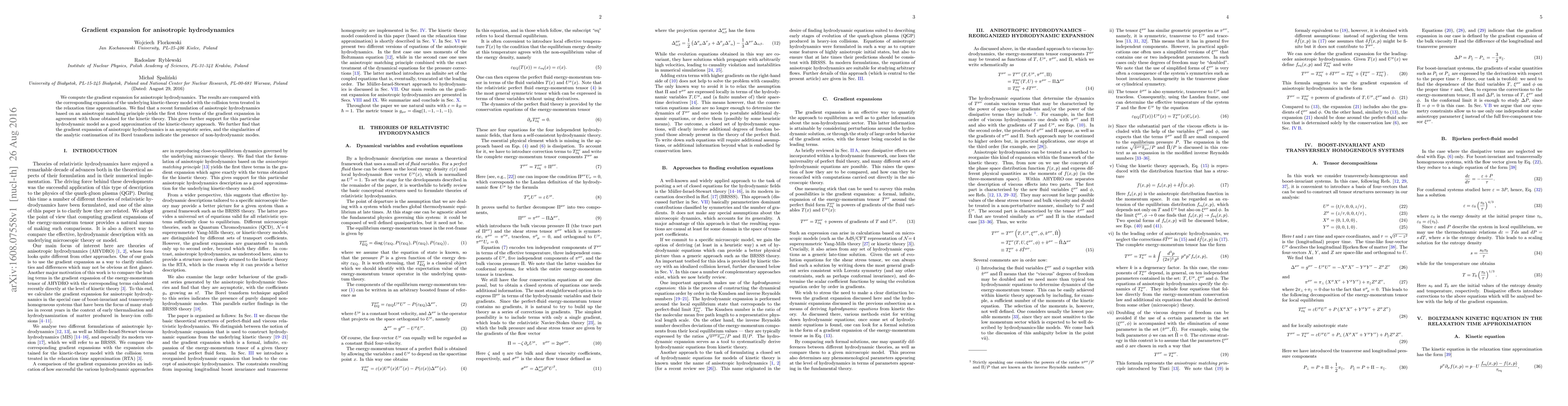 The paper computes the gradient expansion for anisotropic hydrodynamics and finds it aligns with kinetic-theory results up to the third term, supporting a specific hydrodynamic model. Additionally, it reveals that the gradient expansion is an asymptotic series with singularities indicating non-hydrodynamic modes.