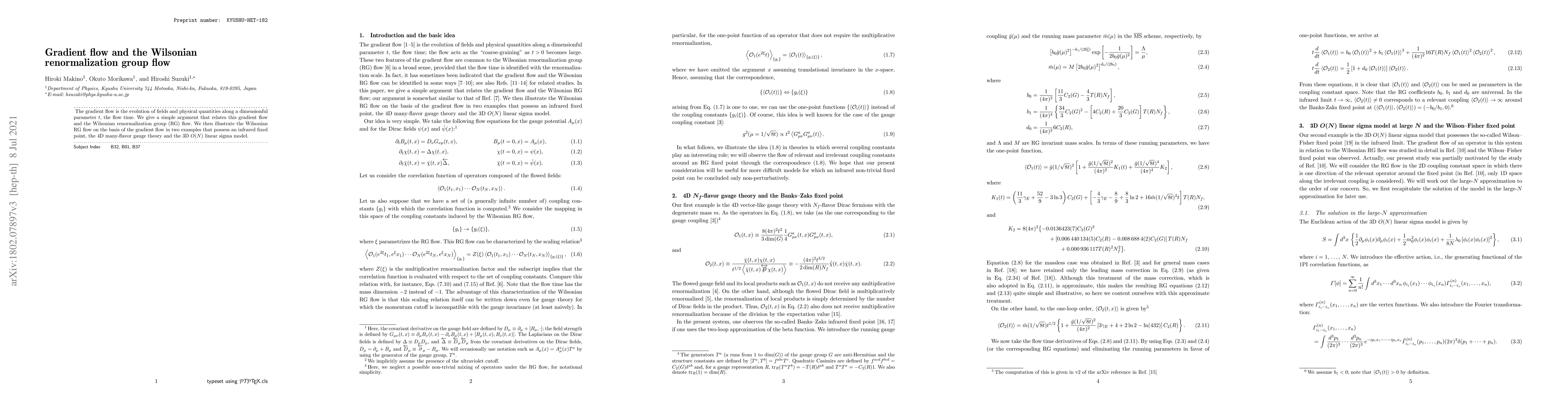 This paper establishes a connection between gradient flow, which evolves fields over a flow time, and the Wilsonian renormalization group flow. It demonstrates this relationship through examples of the 4D many-flavor gauge theory and the 3D $O(N)$ linear sigma model, both showing an infrared fixed point.