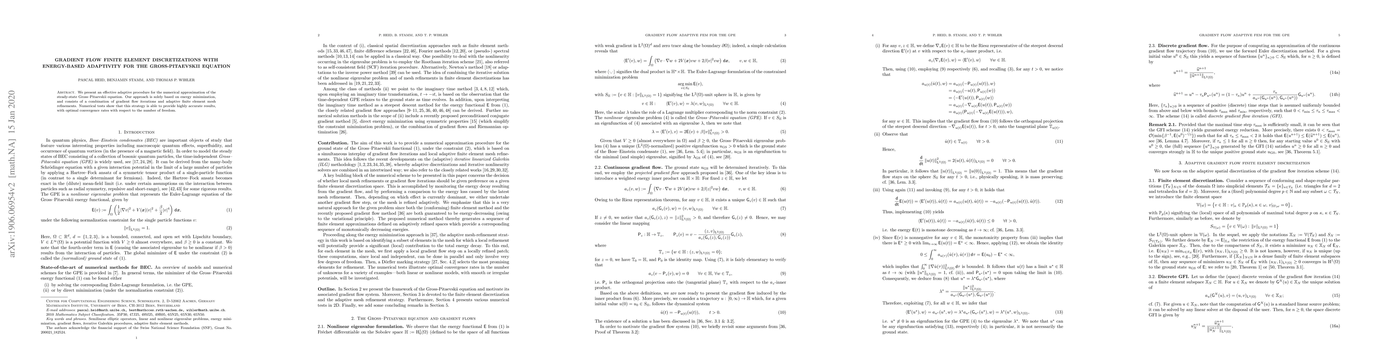 This paper introduces an adaptive finite element method for solving the Gross-Pitaevskii equation, utilizing gradient flow iterations and mesh refinement based on energy minimization to achieve highly accurate results with optimal convergence rates. Numerical tests validate the effectiveness of the proposed adaptive procedure.