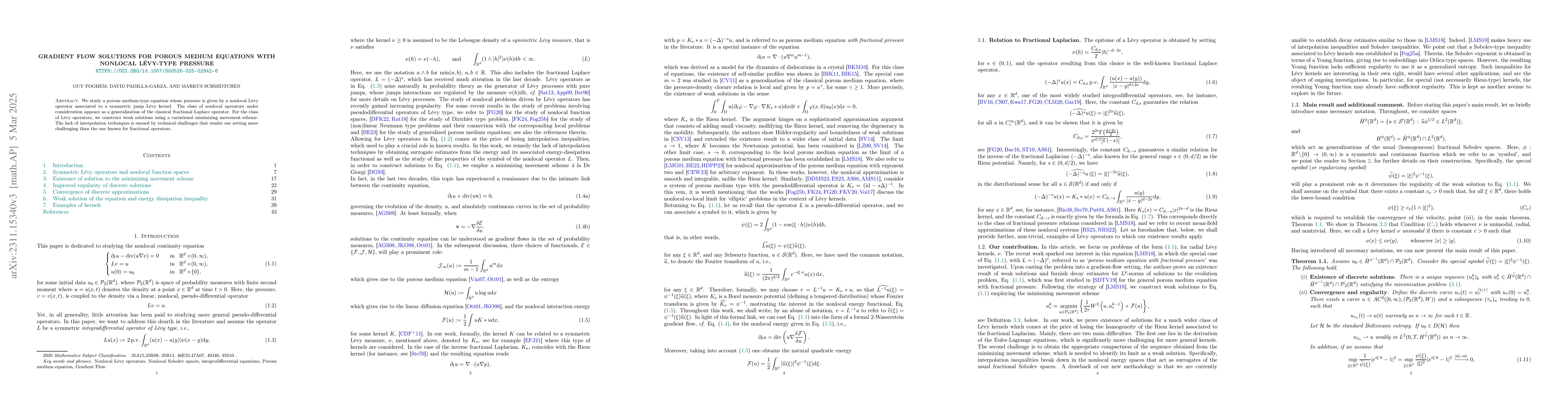 This paper investigates the porous medium equation with pressure defined by a nonlocal Lévy operator, generalizing the fractional Laplace operator. Weak solutions are constructed using a variational minimizing movement scheme, despite the technical challenges posed by the lack of interpolation techniques.