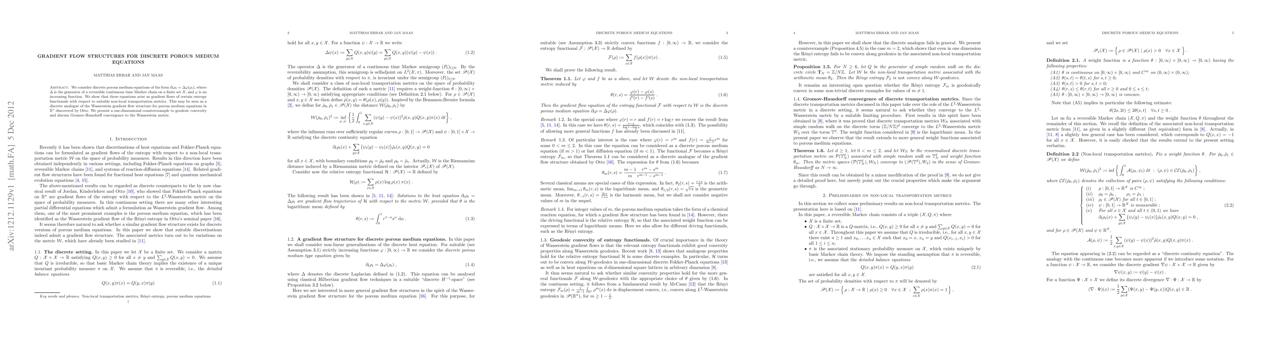 This paper explores discrete porous medium equations as gradient flows of entropy functionals with respect to non-local transportation metrics, establishing a discrete analogue of Otto's Wasserstein gradient flow structure. It also presents a one-dimensional counterexample to geodesic convexity and discusses convergence to the Wasserstein metric.