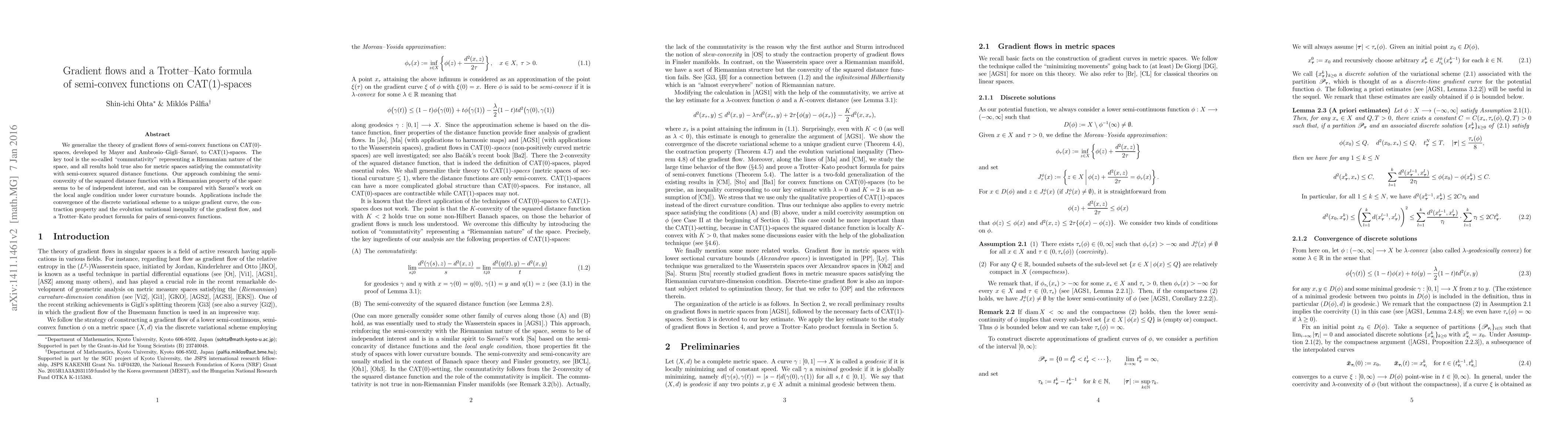 This paper generalizes the theory of gradient flows of semi-convex functions from CAT(0) to CAT(1) spaces, leveraging a "commutativity" property. It establishes convergence, contraction, and evolution variational inequalities, and introduces a Trotter-Kato product formula for semi-convex functions.