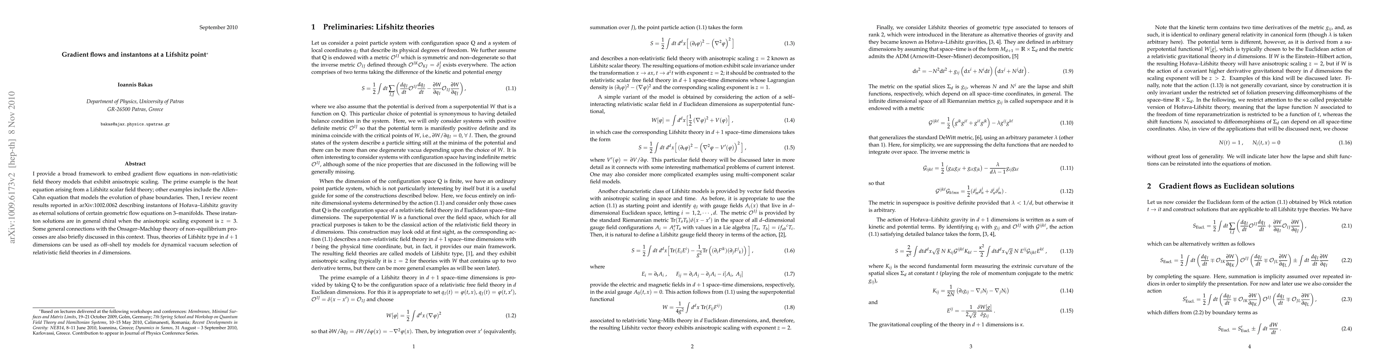 This paper develops a framework for gradient flow equations in non-relativistic field theories with anisotropic scaling, exemplified by the Lifshitz scalar field theory and the Allen-Cahn equation. It also reviews instantons in Horava-Lifshitz gravity, highlighting chiral eternal solutions and connections to non-equilibrium processes, suggesting Lifshitz theories as models for dynamical vacuum selection in relativistic field theories.