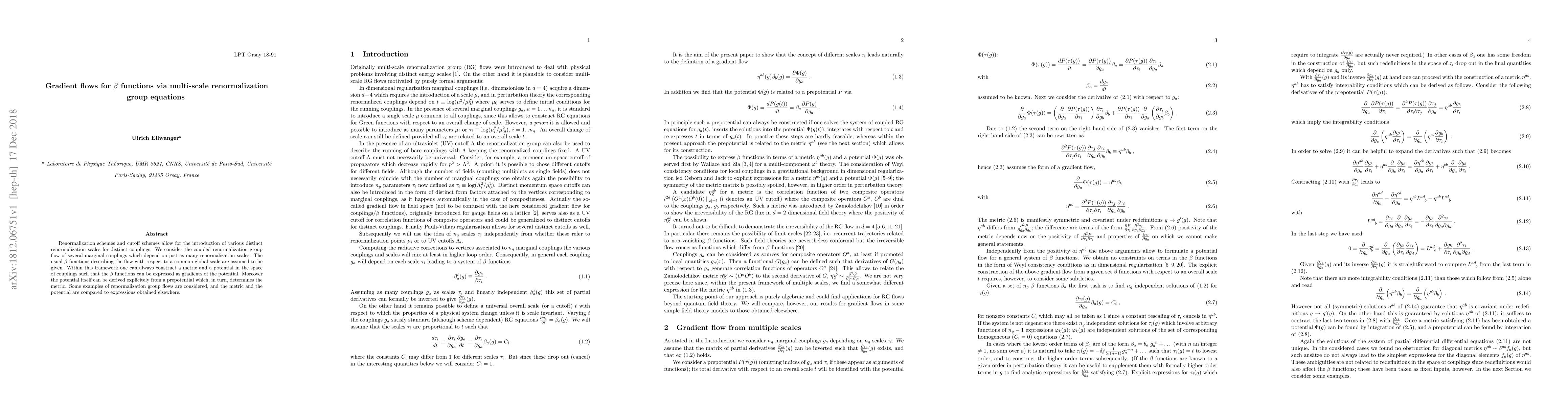 Renormalization schemes and cutoff schemes allow for the introduction of various distinct renormalization scales for distinct couplings. We consider the coupled renormalization group flow of several marginal couplings which depend on just as many renormalization scales. The usual $\beta$ functions describing the flow with respect to a common global scale are assumed to be given. Within this framework one can always construct a metric and a potential in the space of couplings such that the $\beta$ functions can be expressed as gradients of the potential. Moreover the potential itself can be derived explicitly from a prepotential which, in turn, determines the metric. Some examples of renormalization group flows are considered, and the metric and the potential are compared to expressions obtained elsewhere.