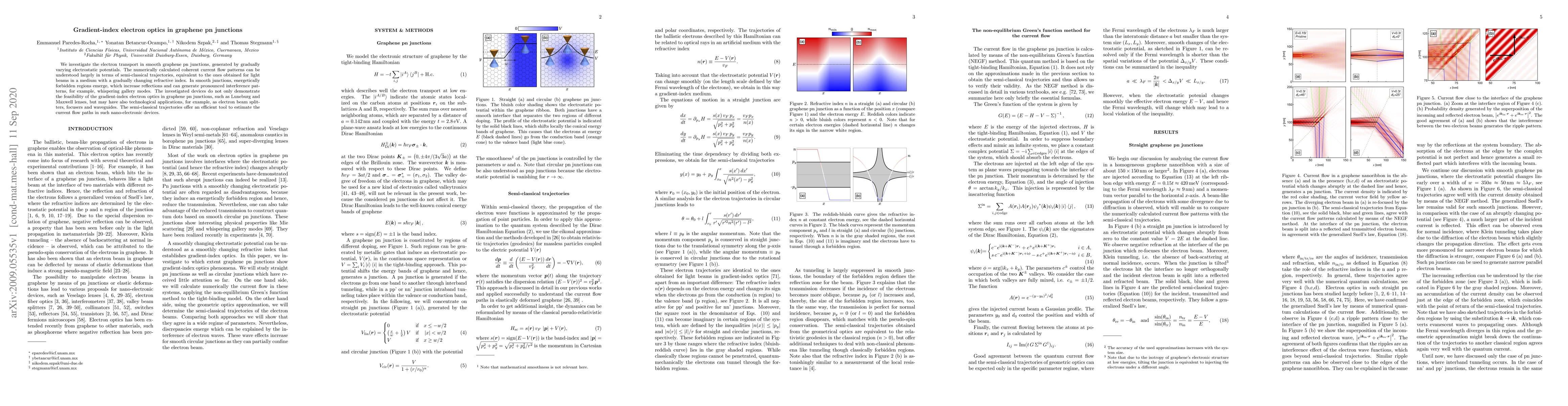 This paper explores electron transport in graphene pn junctions with gradient-index electron optics, demonstrating coherent current flow patterns akin to light in varying refractive index media. The study shows potential applications in electron beam manipulation devices, such as splitters and focusers, using semi-classical trajectories.