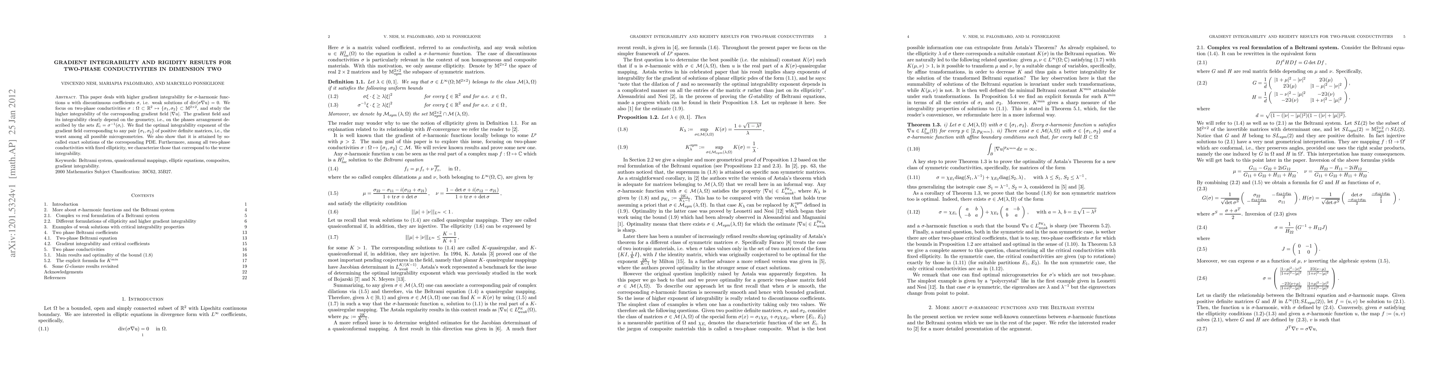 This paper investigates higher integrability properties of $\sigma$-harmonic functions with discontinuous coefficients in two dimensions, focusing on two-phase conductivities. It determines the optimal integrability exponent for the gradient field and identifies the worst-case microgeometries among all possible arrangements, showing that exact solutions achieve this worst integrability.