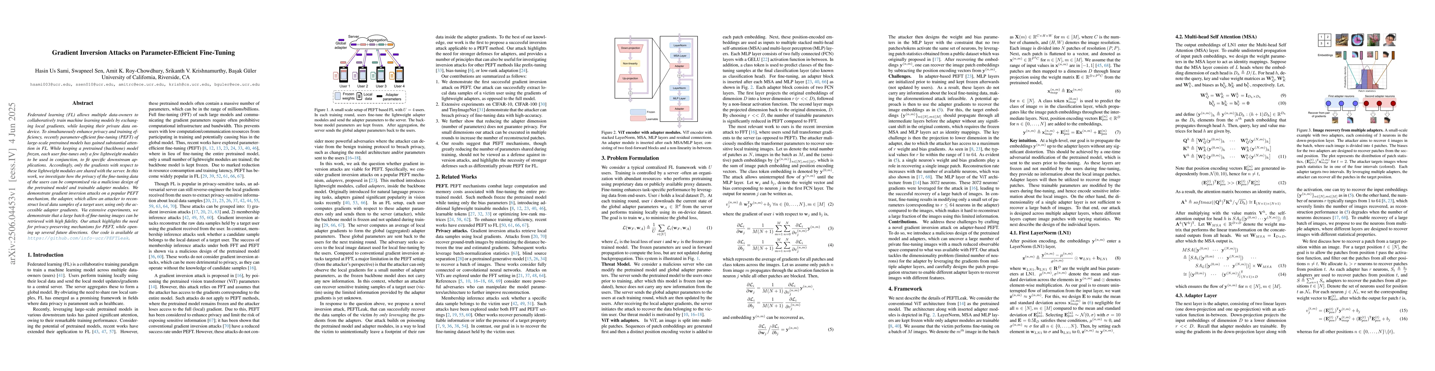 Researchers demonstrate a method to compromise the privacy of fine-tuning data in parameter-efficient fine-tuning using gradient inversion attacks on pre-trained models.