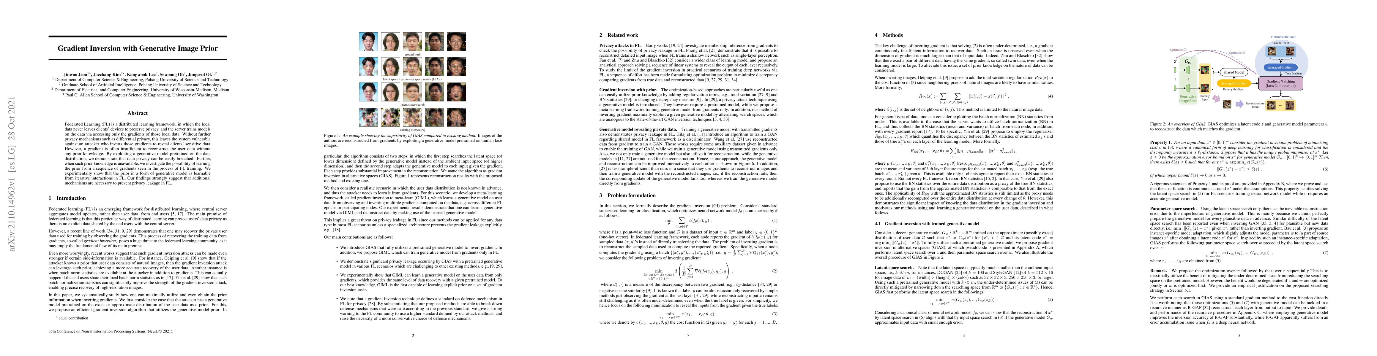 Federated Learning (FL) is a distributed learning framework, in which the local data never leaves clients devices to preserve privacy, and the server trains models on the data via accessing only the gradients of those local data. Without further privacy mechanisms such as differential privacy, this leaves the system vulnerable against an attacker who inverts those gradients to reveal clients sensitive data. However, a gradient is often insufficient to reconstruct the user data without any prior knowledge. By exploiting a generative model pretrained on the data distribution, we demonstrate that data privacy can be easily breached. Further, when such prior knowledge is unavailable, we investigate the possibility of learning the prior from a sequence of gradients seen in the process of FL training. We experimentally show that the prior in a form of generative model is learnable from iterative interactions in FL. Our findings strongly suggest that additional mechanisms are necessary to prevent privacy leakage in FL.