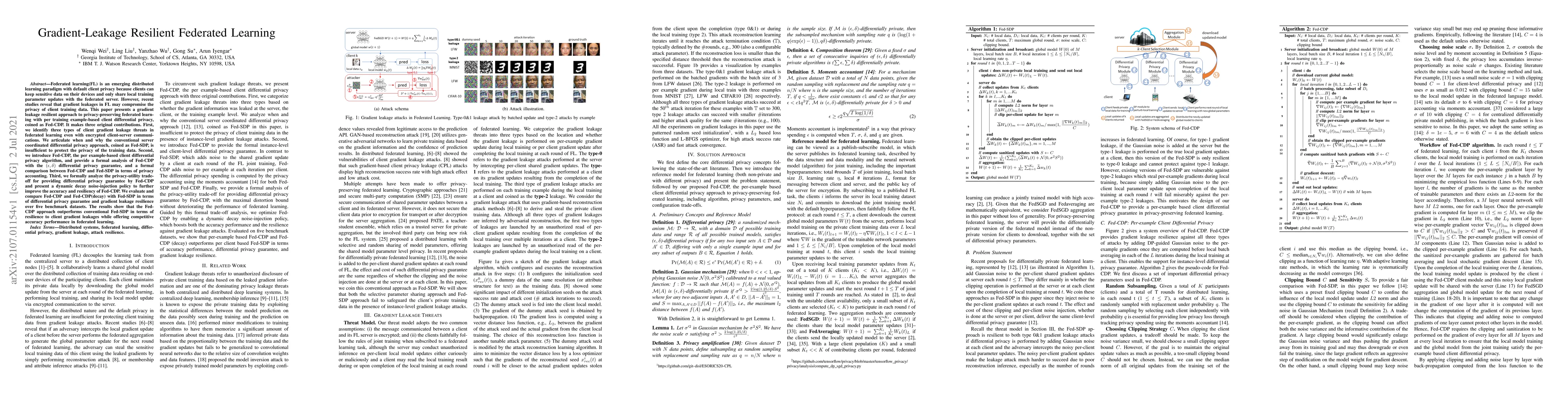 This paper introduces Fed-CDP, a per training example-based client differential privacy approach for federated learning, to address gradient leakage threats. It outperforms conventional Fed-SDP in gradient leakage resilience while maintaining competitive accuracy across multiple datasets.