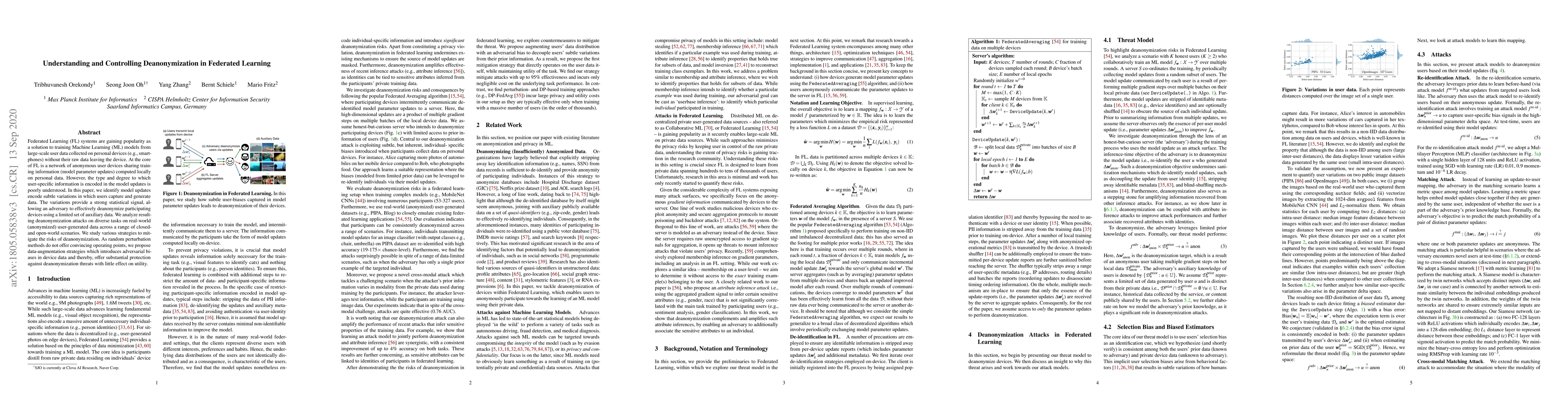 Researchers discovered that model updates in Federated Learning systems can deanonymize user devices due to subtle variations in data capture, posing a security risk. They propose data-augmentation strategies to mitigate this risk, offering substantial protection against deanonymization threats with minimal impact on utility.