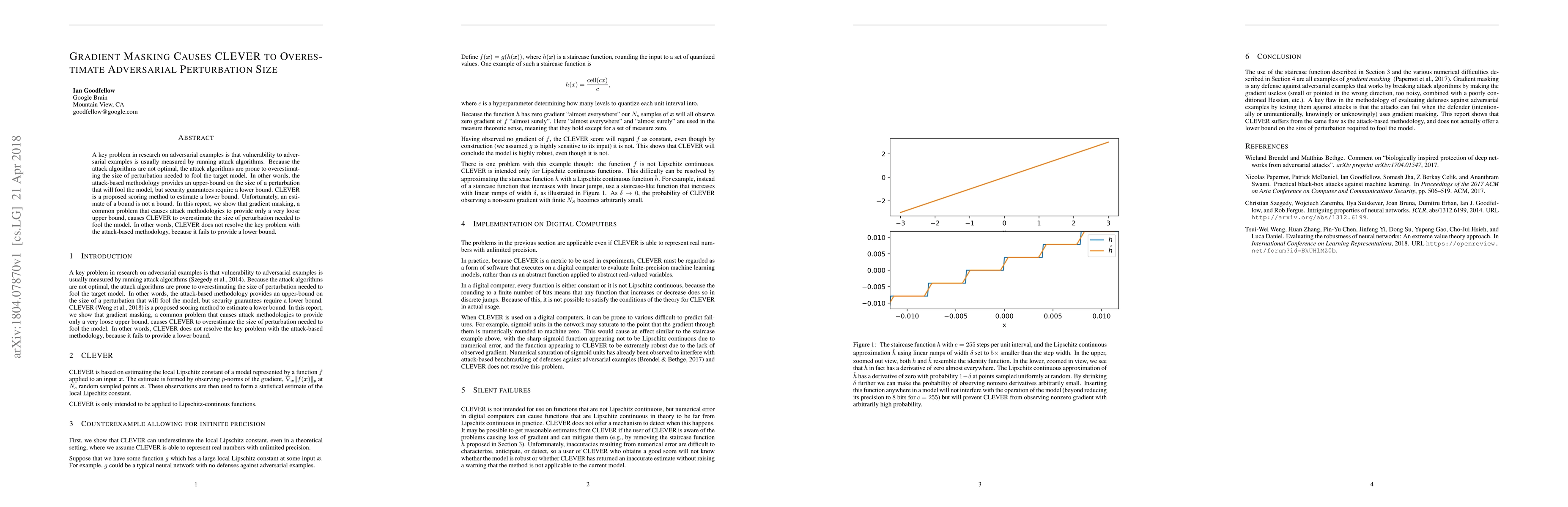 A key problem in research on adversarial examples is that vulnerability to adversarial examples is usually measured by running attack algorithms. Because the attack algorithms are not optimal, the attack algorithms are prone to overestimating the size of perturbation needed to fool the target model. In other words, the attack-based methodology provides an upper-bound on the size of a perturbation that will fool the model, but security guarantees require a lower bound. CLEVER is a proposed scoring method to estimate a lower bound. Unfortunately, an estimate of a bound is not a bound. In this report, we show that gradient masking, a common problem that causes attack methodologies to provide only a very loose upper bound, causes CLEVER to overestimate the size of perturbation needed to fool the model. In other words, CLEVER does not resolve the key problem with the attack-based methodology, because it fails to provide a lower bound.