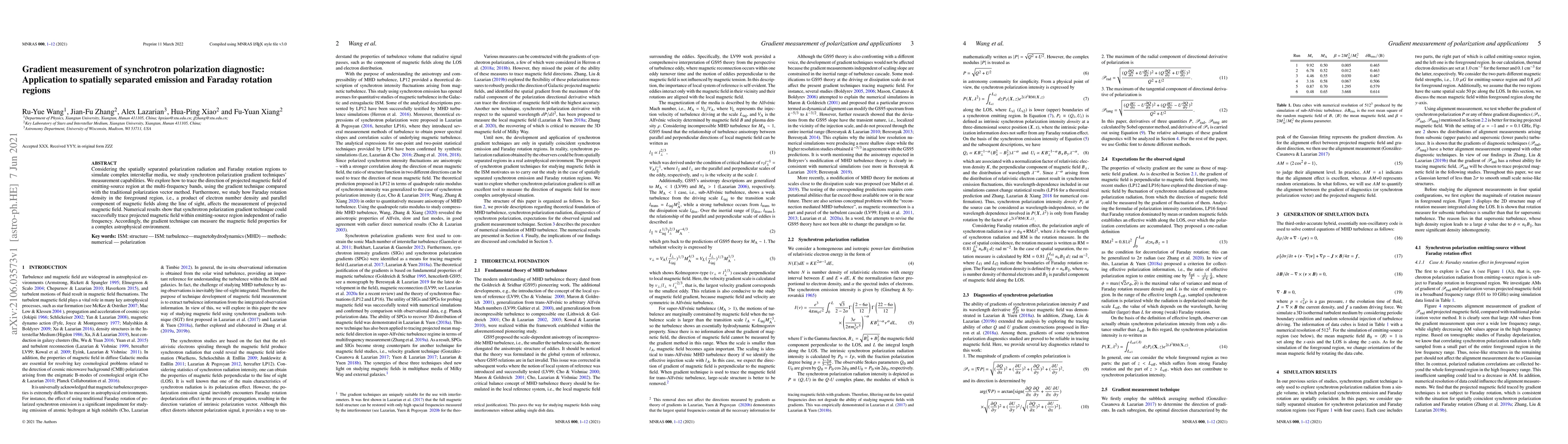 This paper investigates the gradient measurement technique for synchrotron polarization diagnostics, demonstrating its effectiveness in tracing the projected magnetic field direction across multi-frequency bands. It also examines the impact of Faraday rotation density on these measurements, showing that the gradient technique can accurately measure magnetic fields in complex astrophysical environments.