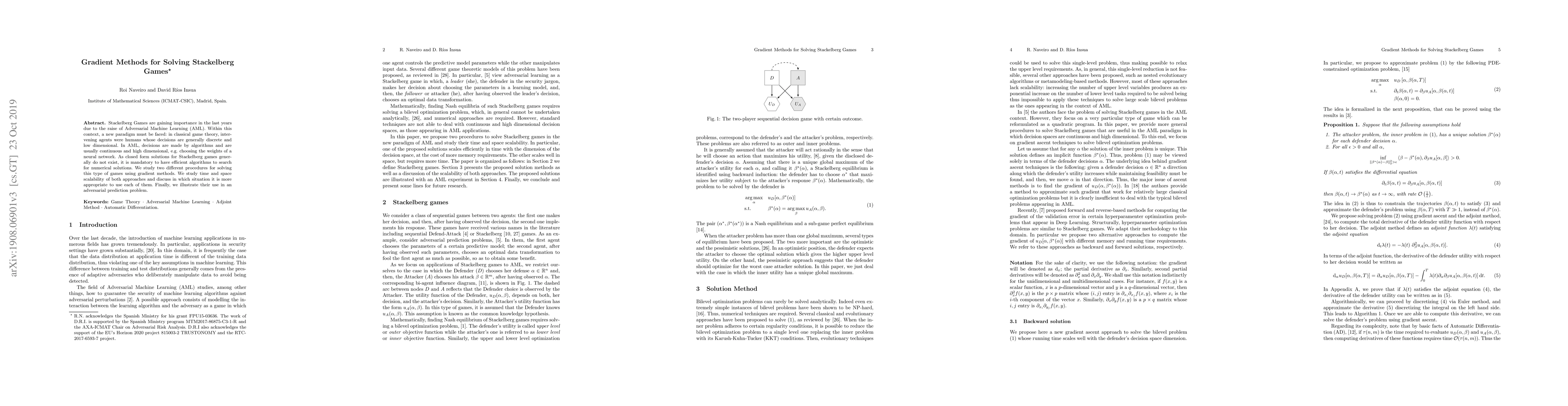 This work introduces a new approach to solving Stackelberg games using gradient-based optimization techniques, which is distinct from existing methods