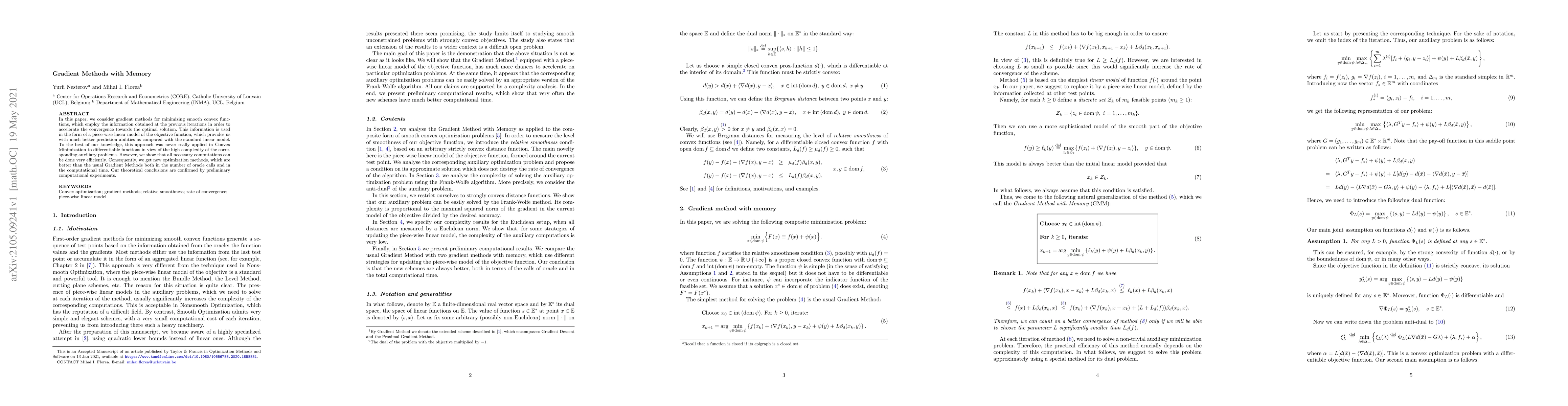 In this paper, we consider gradient methods for minimizing smooth convex functions, which employ the information obtained at the previous iterations in order to accelerate the convergence towards the optimal solution. This information is used in the form of a piece-wise linear model of the objective function, which provides us with much better prediction abilities as compared with the standard linear model. To the best of our knowledge, this approach was never really applied in Convex Minimization to differentiable functions in view of the high complexity of the corresponding auxiliary problems. However, we show that all necessary computations can be done very efficiently. Consequently, we get new optimization methods, which are better than the usual Gradient Methods both in the number of oracle calls and in the computational time. Our theoretical conclusions are confirmed by preliminary computational experiments.
