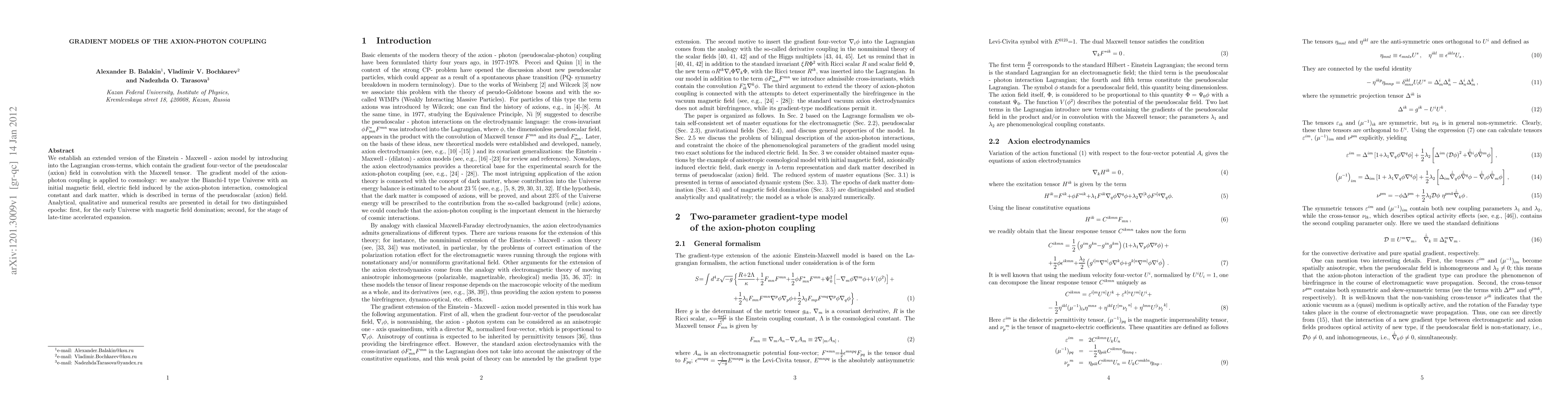 The paper introduces an extended Einstein-Maxwell-axion model with gradient terms in the Lagrangian, leading to cross-invariants between the axion field and the electromagnetic field strength tensor. This extension allows for the study of axion-photon interactions in a cosmological setting, revealing potential consequences for dark matter and the early Universe's evolution.
