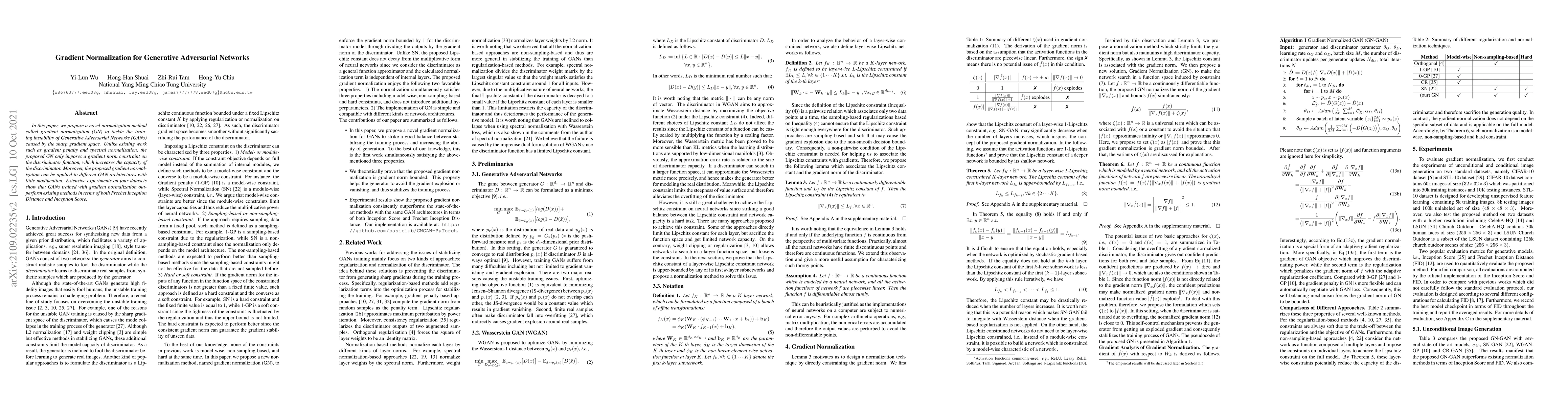 This paper introduces gradient normalization (GN) to stabilize GAN training by enforcing a 1-Lipschitz constraint on the discriminator, enhancing its capacity. Experiments demonstrate that GN outperforms existing methods in terms of Frechet Inception Distance and Inception Score across four datasets.