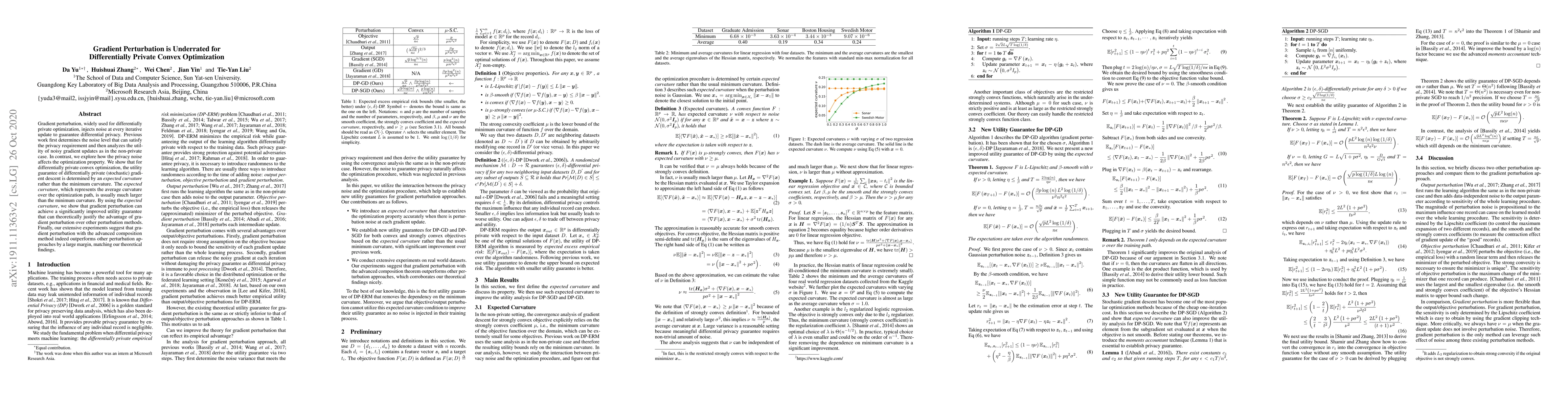 Gradient perturbation, widely used for differentially private optimization, injects noise at every iterative update to guarantee differential privacy. Previous work first determines the noise level that can satisfy the privacy requirement and then analyzes the utility of noisy gradient updates as in the non-private case. In contrast, we explore how privacy noise affects optimization property. We show that for differentially private convex optimization, the utility guarantee of differentially private (stochastic) gradient descent is determined by an \emph{expected curvature} rather than the minimum curvature. The \emph{expected curvature}, which represents the average curvature over the optimization path, is usually much larger than the minimum curvature. By using the \emph{expected curvature}, we show that gradient perturbation can achieve a significantly improved utility guarantee that can theoretically justify the advantage of gradient perturbation over other perturbation methods. Finally, our extensive experiments suggest that gradient perturbation with the advanced composition method indeed outperforms other perturbation approaches by a large margin, matching our theoretical findings.