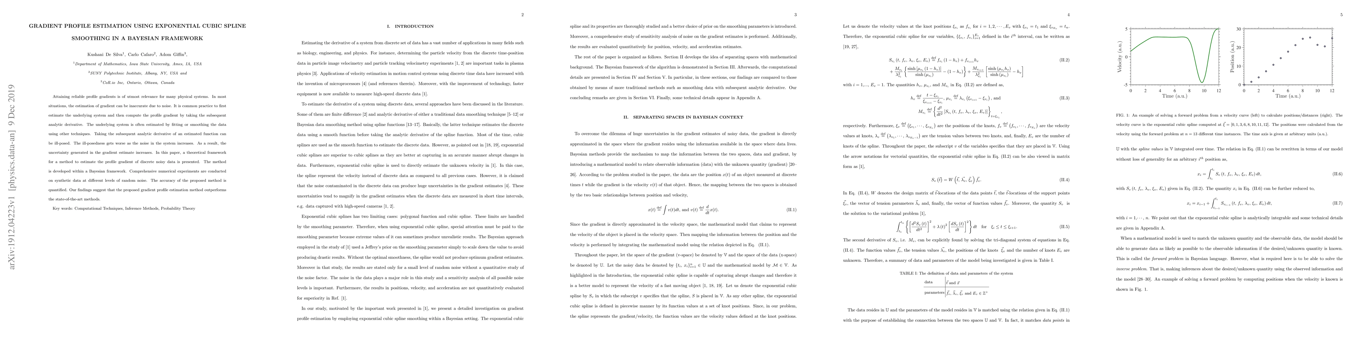 Attaining reliable profile gradients is of utmost relevance for many physical systems. In most situations, the estimation of gradient can be inaccurate due to noise. It is common practice to first estimate the underlying system and then compute the profile gradient by taking the subsequent analytic derivative. The underlying system is often estimated by fitting or smoothing the data using other techniques. Taking the subsequent analytic derivative of an estimated function can be ill-posed. The ill-posedness gets worse as the noise in the system increases. As a result, the uncertainty generated in the gradient estimate increases. In this paper, a theoretical framework for a method to estimate the profile gradient of discrete noisy data is presented. The method is developed within a Bayesian framework. Comprehensive numerical experiments are conducted on synthetic data at different levels of random noise. The accuracy of the proposed method is quantified. Our findings suggest that the proposed gradient profile estimation method outperforms the state-of-the-art methods.