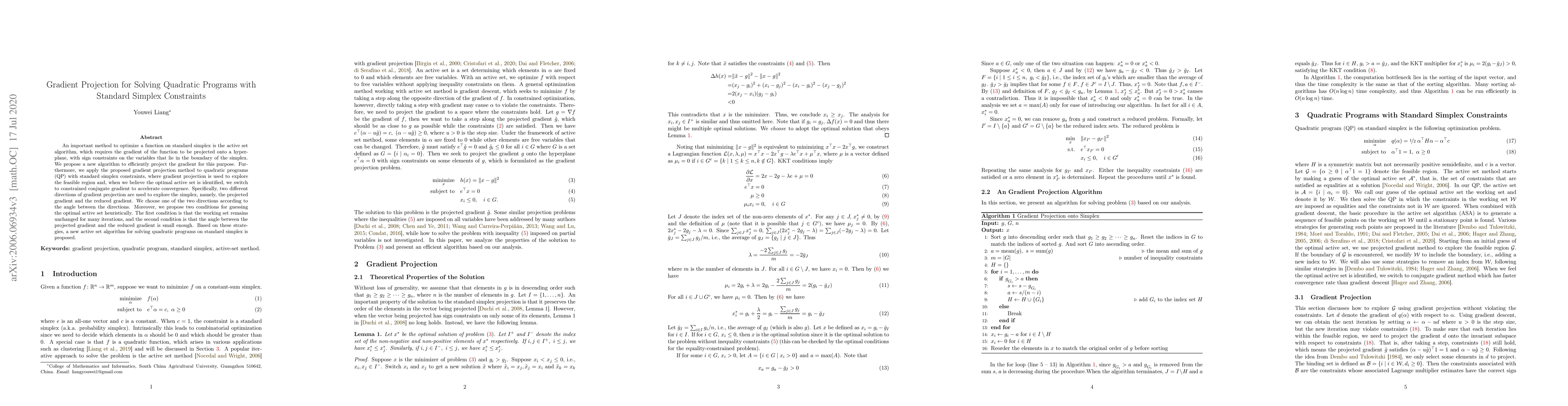 A new algorithm is proposed to efficiently project gradients for solving quadratic programs with standard simplex constraints, combining gradient projection and conjugate gradient methods to accelerate convergence.
