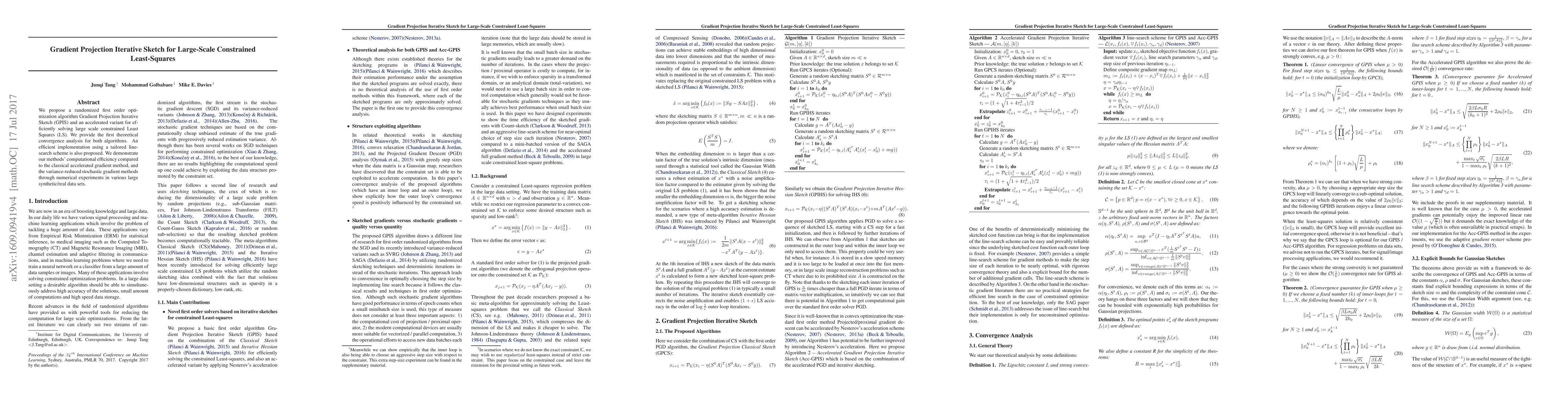 This paper introduces the Gradient Projection Iterative Sketch (GPIS) and its accelerated variant for solving large-scale constrained least-squares problems. It provides theoretical convergence analysis and demonstrates superior computational efficiency compared to classical and state-of-the-art methods through extensive numerical experiments.