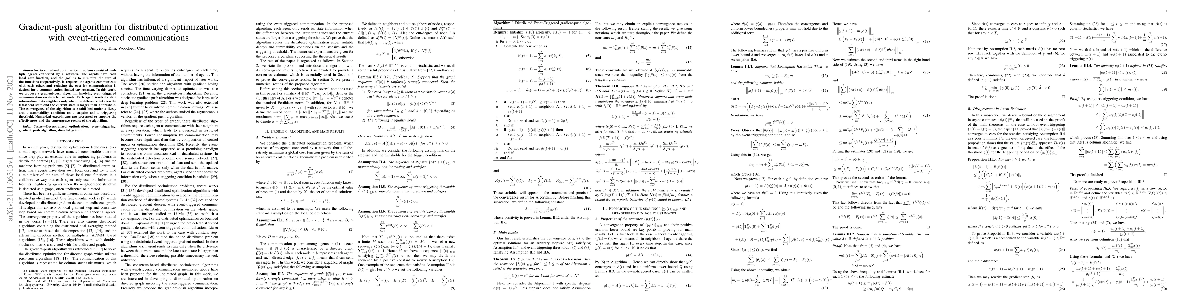 A new algorithm called gradient-push is proposed for decentralized optimization problems with limited communication, achieving convergence under specific conditions. The algorithm uses event-triggered communication to reduce costs in a network of agents.
