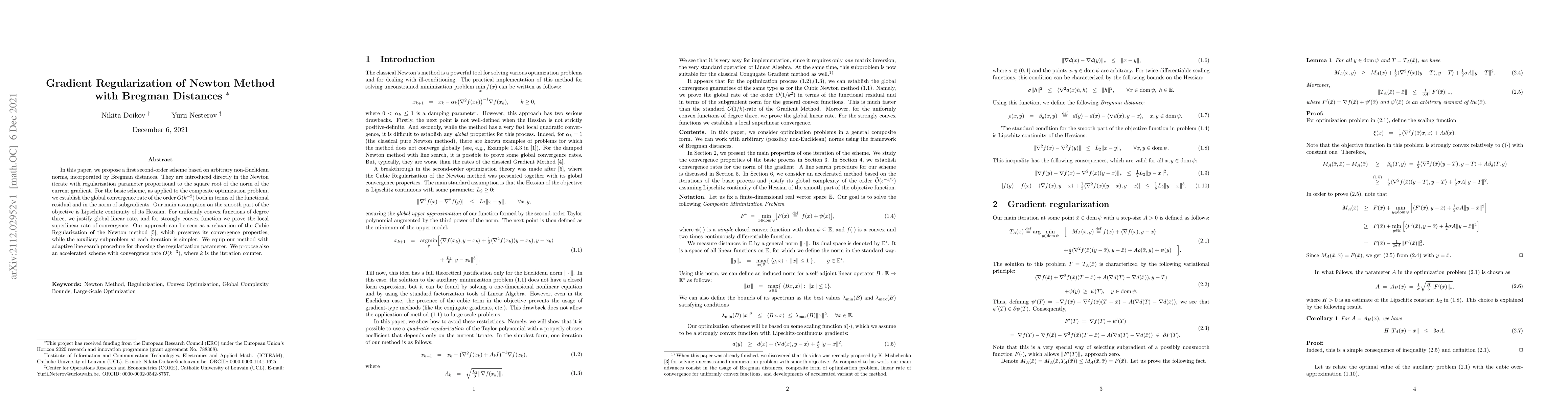 In this paper, we propose a first second-order scheme based on arbitrary non-Euclidean norms, incorporated by Bregman distances. They are introduced directly in the Newton iterate with regularization parameter proportional to the square root of the norm of the current gradient. For the basic scheme, as applied to the composite optimization problem, we establish the global convergence rate of the order $O(k^{-2})$ both in terms of the functional residual and in the norm of subgradients. Our main assumption on the smooth part of the objective is Lipschitz continuity of its Hessian. For uniformly convex functions of degree three, we justify global linear rate, and for strongly convex function we prove the local superlinear rate of convergence. Our approach can be seen as a relaxation of the Cubic Regularization of the Newton method, which preserves its convergence properties, while the auxiliary subproblem at each iteration is simpler. We equip our method with adaptive line search procedure for choosing the regularization parameter. We propose also an accelerated scheme with convergence rate $O(k^{-3})$, where $k$ is the iteration counter.