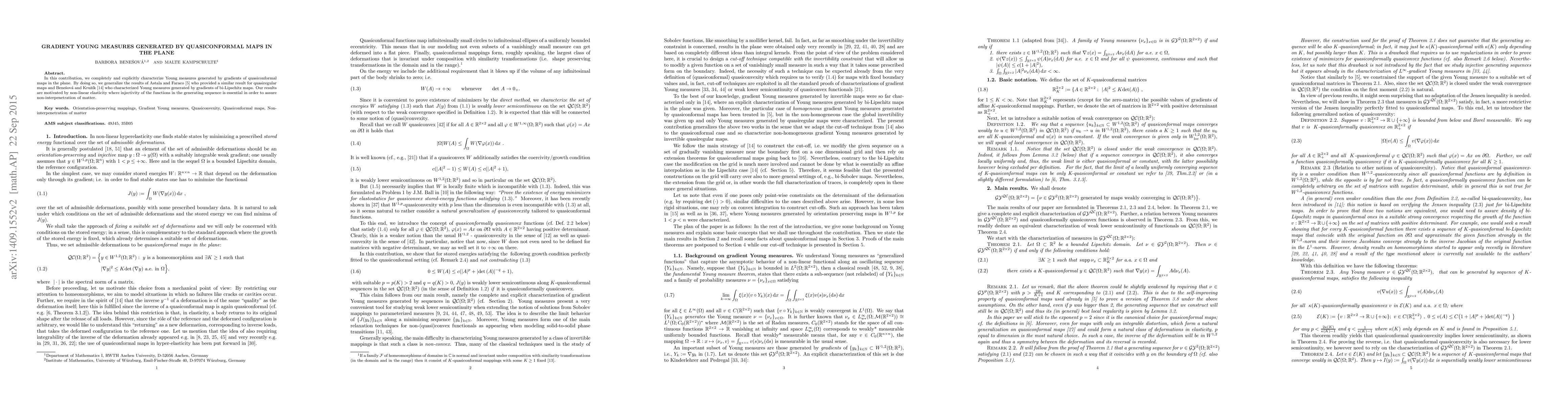 This paper explicitly characterizes Young measures generated by gradients of quasiconformal maps in the plane, extending previous results for quasiregular and bi-Lipschitz maps. The findings are significant for non-linear elasticity, ensuring the injectivity necessary for material non-interpenetration.