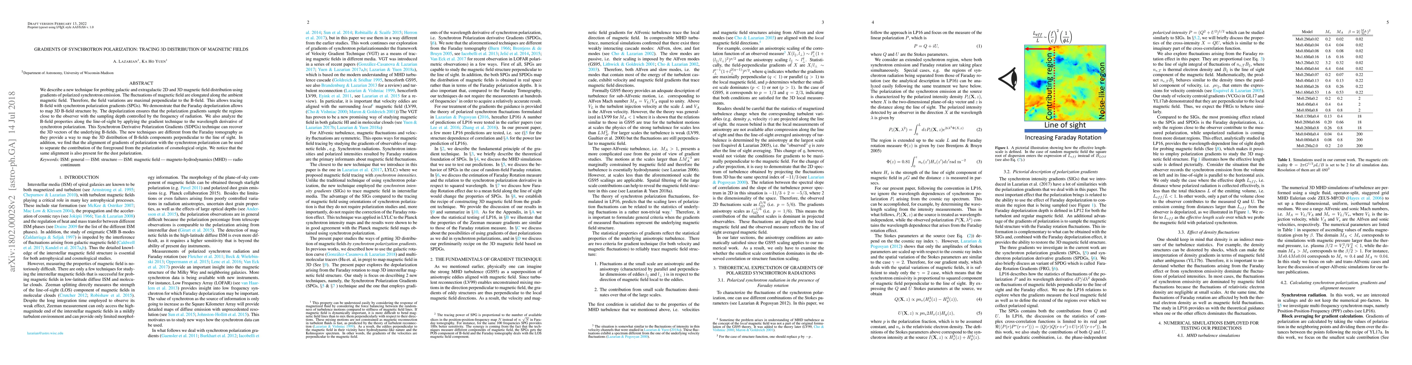 We describe a new technique for probing galactic and extragalactic 2D and 3D magnetic field distribution using gradients of polarized synchrotron emission. The fluctuations of magnetic field are elongated along the ambient magnetic field. Therefore, the field variations are maximal perpendicular to the B-field. This allows tracing B-field with synchrotron polarization gradients (SPGs). We demonstrate that the Faraday depolarization allows to map 3D B-field structure by. The depolarization ensures that the polarization gradients sample the regions close to the observer with the sampling depth controlled by the frequency of radiation. We also analyze the B-field properties along the line-of-sight by applying the gradient technique to the wavelength derivative of synchrotron polarization. This Synchrotron Derivative Polarization Gradients (SDPGs) technique can recover the 3D vectors of the underlying B-fields. The new techniques are different from the Faraday tomography as they provide a way to map the 3D distribution of B-fields components perpendicular to the line of sight. In addition, we find that the alignment of gradients of polarization with the synchrotron polarization can be used to separate the contribution of the foreground from the polarization of cosmological origin. We notice that the same alignment is also present for the dust polarization.