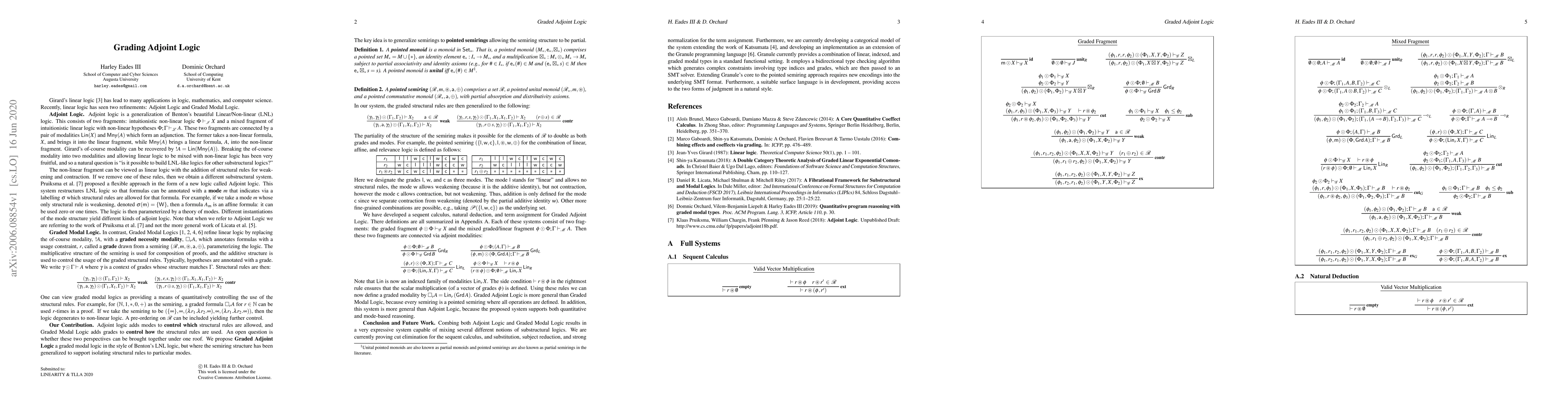 The paper introduces Graded Adjoint Logic, merging Adjoint Logic with Graded Necessity Modalities to create a highly expressive system that regulates the application of structural rules. It provides a comprehensive framework including sequent calculus, natural deduction, and term assignment for this new logic.