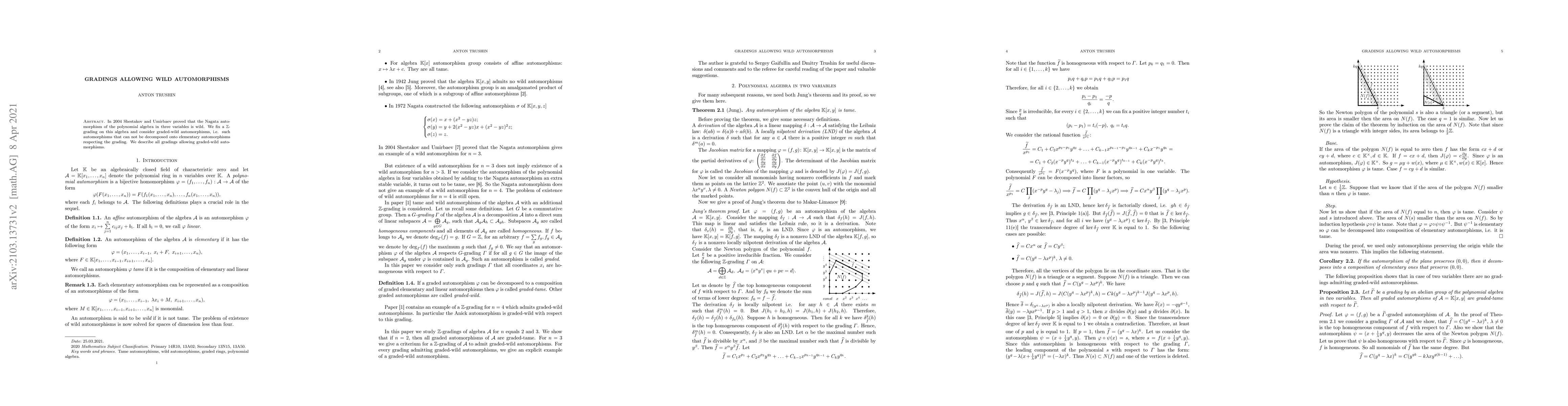 This paper investigates the existence of Z-gradings on the polynomial algebra in three variables that allow for "graded-wild automorphisms," which cannot be decomposed into elementary automorphisms respecting the grading. The authors describe all such gradings that permit these complex automorphisms.