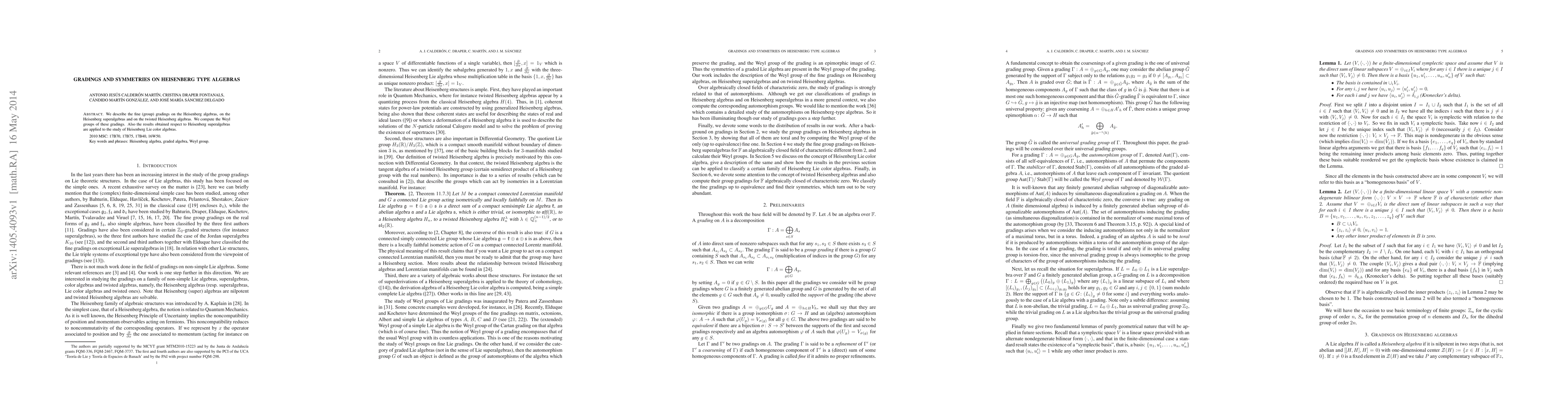 This paper investigates the fine (group) gradings on Heisenberg algebras, Heisenberg superalgebras, and twisted Heisenberg algebras, computing their Weyl groups. It also applies findings on Heisenberg superalgebras to the study of Heisenberg Lie color algebras.