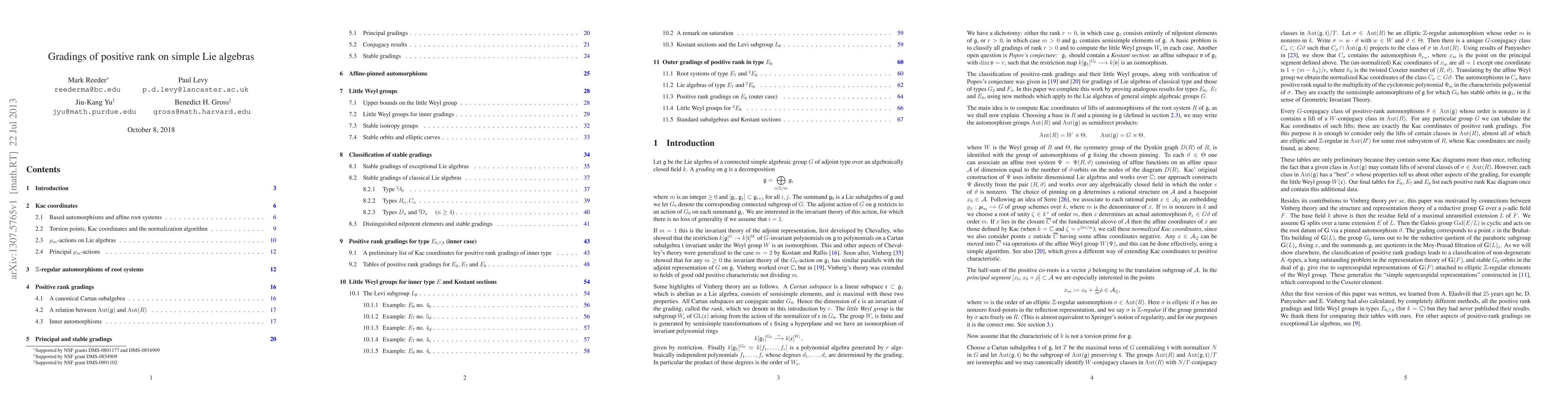 This paper completes the classification of positive rank gradings on simple Lie algebras of algebraic groups over fields of characteristic zero or sufficiently large positive characteristic, determining the associated little Weyl groups and classifying stable gradings. It also proves Popov's conjecture regarding the existence of a Kostant section.