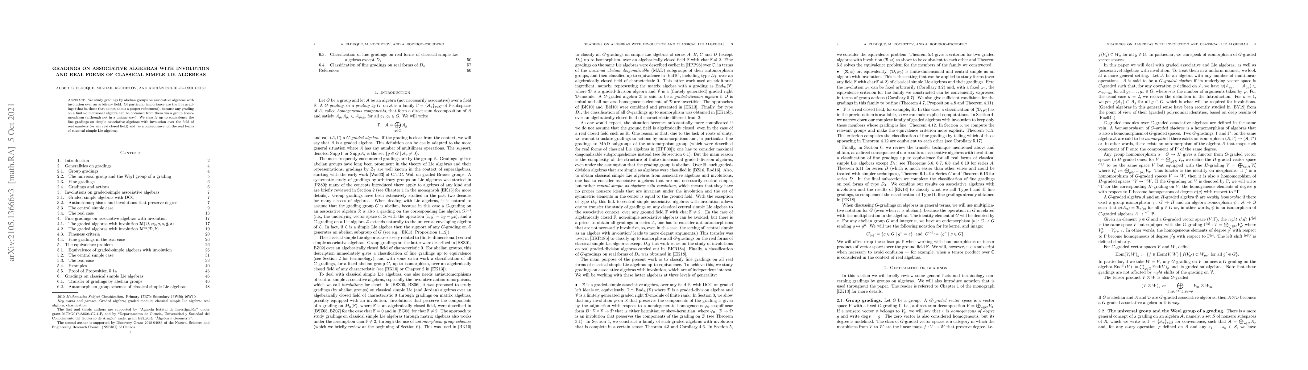 This paper classifies fine gradings on associative algebras with involution over real closed fields, which are essential as any grading can be derived from them. It focuses on simple associative algebras with involution and their connection to the real forms of classical simple Lie algebras.