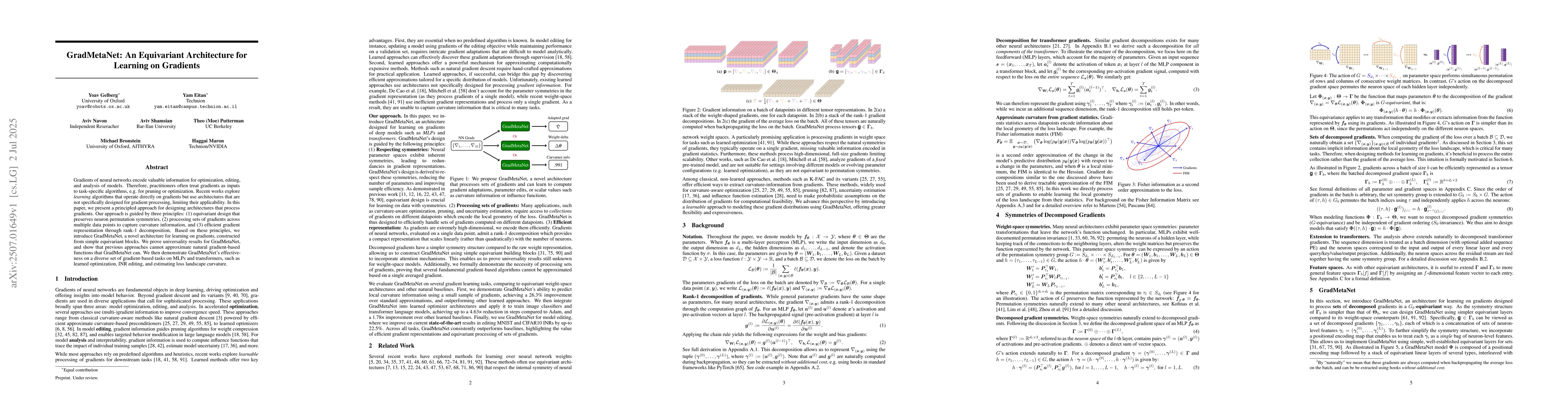 Gradients of neural networks encode valuable information for optimization, editing, and analysis of models. Therefore, practitioners often treat gradients as inputs to task-specific algorithms, e.g. for pruning or optimization. Recent works explore learning algorithms that operate directly on gradients but use architectures that are not specifically designed for gradient processing, limiting their applicability. In this paper, we present a principled approach for designing architectures that process gradients. Our approach is guided by three principles: (1) equivariant design that preserves neuron permutation symmetries, (2) processing sets of gradients across multiple data points to capture curvature information, and (3) efficient gradient representation through rank-1 decomposition. Based on these principles, we introduce GradMetaNet, a novel architecture for learning on gradients, constructed from simple equivariant blocks. We prove universality results for GradMetaNet, and show that previous approaches cannot approximate natural gradient-based functions that GradMetaNet can. We then demonstrate GradMetaNet's effectiveness on a diverse set of gradient-based tasks on MLPs and transformers, such as learned optimization, INR editing, and estimating loss landscape curvature.