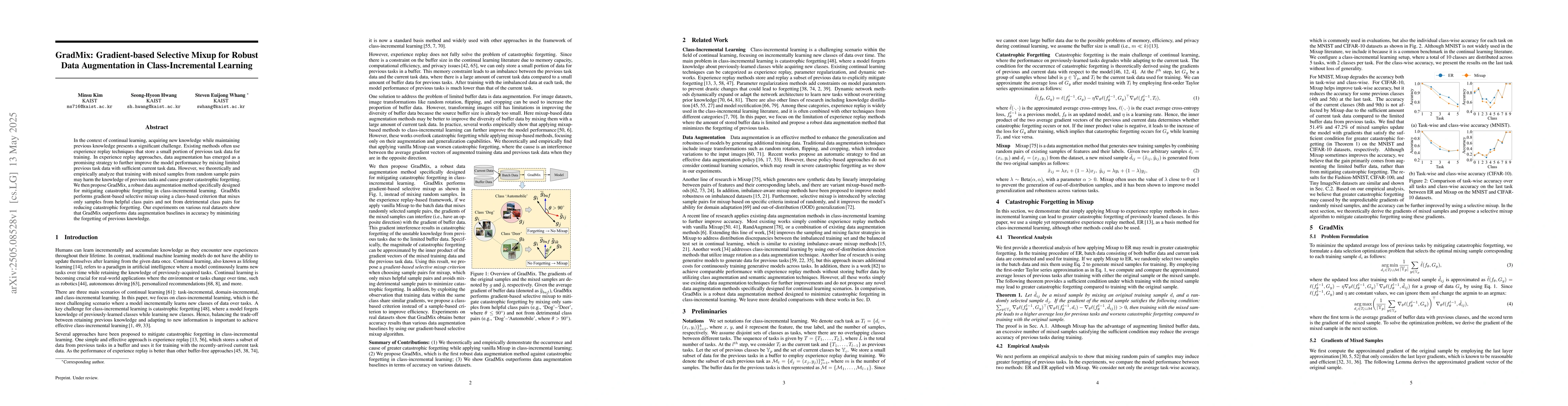 GradMix, a novel data augmentation technique using gradient-based selective mixup to reduce catastrophic forgetting in class-incremental learning.