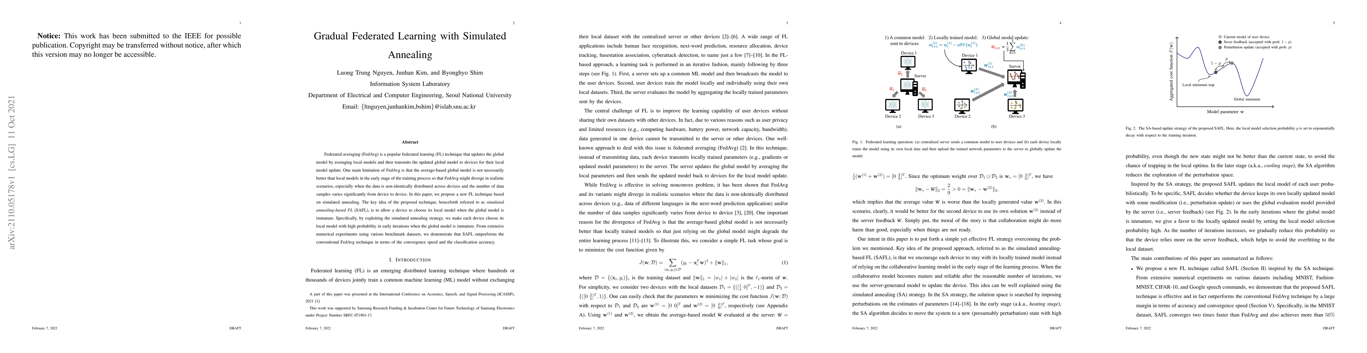A new federated learning technique called simulated annealing-based FL (SAFL) outperforms conventional FedAvg in convergence speed and classification accuracy, addressing limitations of average-based global models.