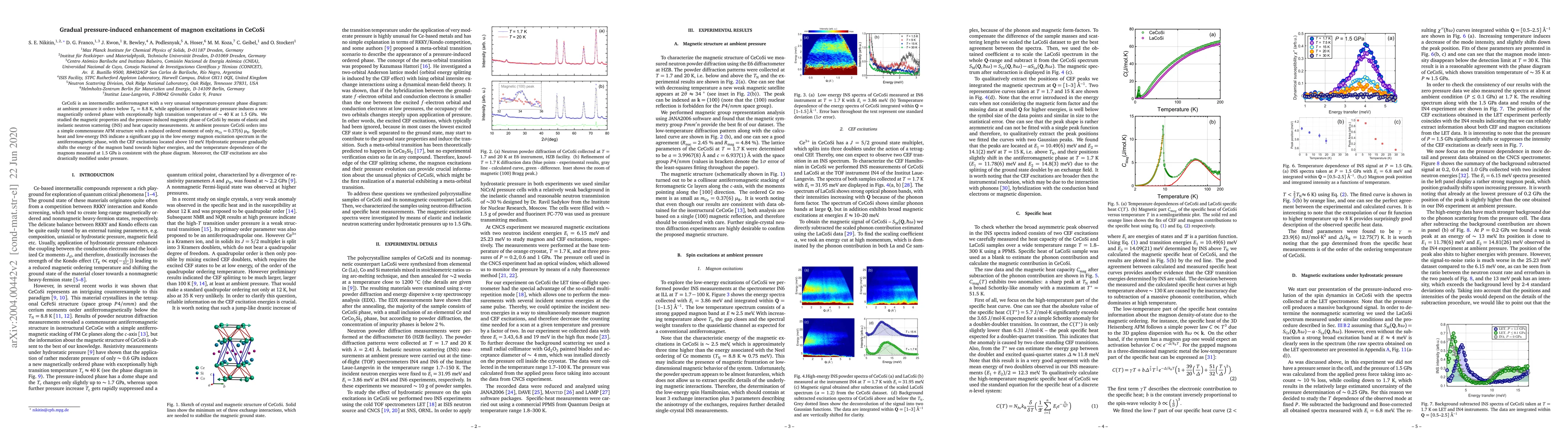 Researchers studied CeCoSi, an antiferromagnet, under pressure, finding that it shifts the energy of magnon band towards higher energies and drastically modifies the CEF excitations. This leads to a significant enhancement of magnon excitations at high pressures.
