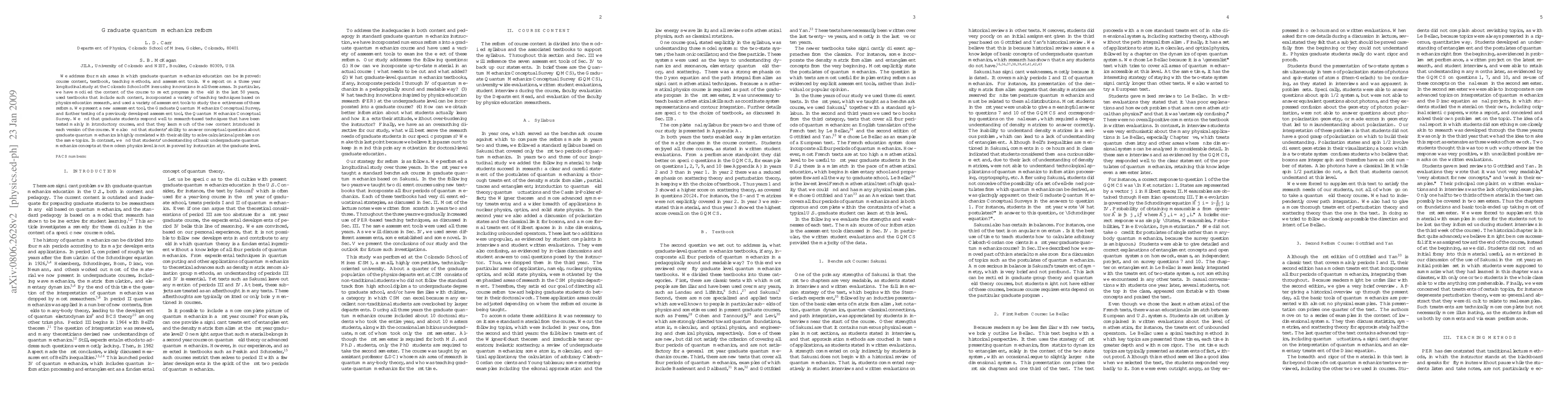 This research is important as it addresses the need for reform in graduate quantum mechanics education, which is crucial for preparing students to become effective researchers in the field.