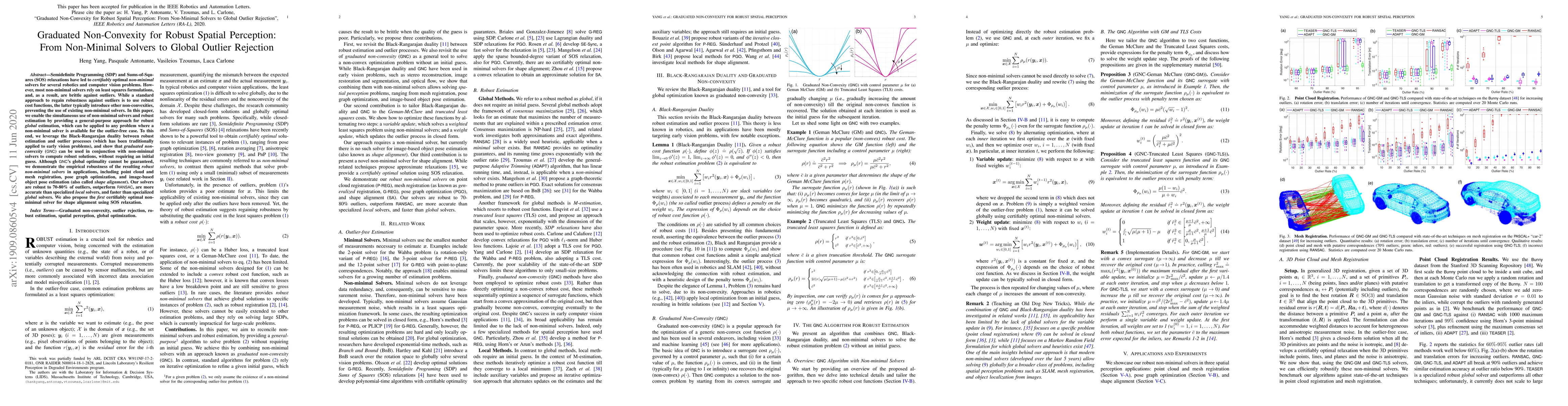 This paper introduces a new method for robust global estimation using graduated non-convexity (GNC) in conjunction with non-minimal solvers to handle outliers in robotics and computer vision problems. The proposed approach leverages Black-Rangarajan duality to achieve empirical robustness without requiring an initial guess, outperforming RANSAC and specialized solvers in accuracy and speed.