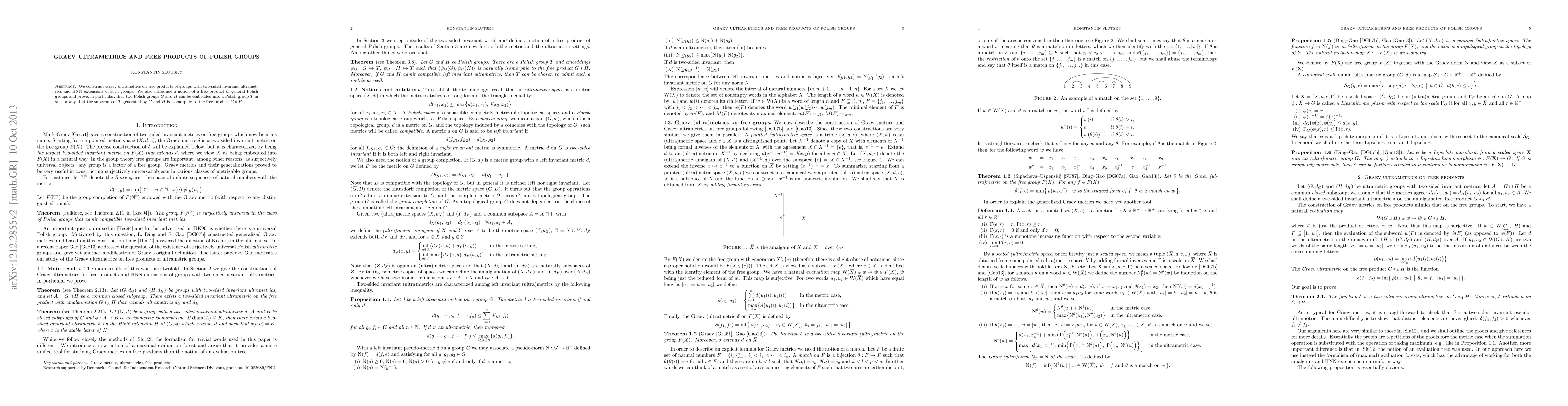 The paper constructs Graev ultrametrics on free products of groups with two-sided invariant ultrametrics and HNN extensions, and introduces a method for embedding Polish groups into a larger Polish group to form a free product structure. The main result proves the free product of two Polish groups can be represented as a subgroup within a larger Polish group.