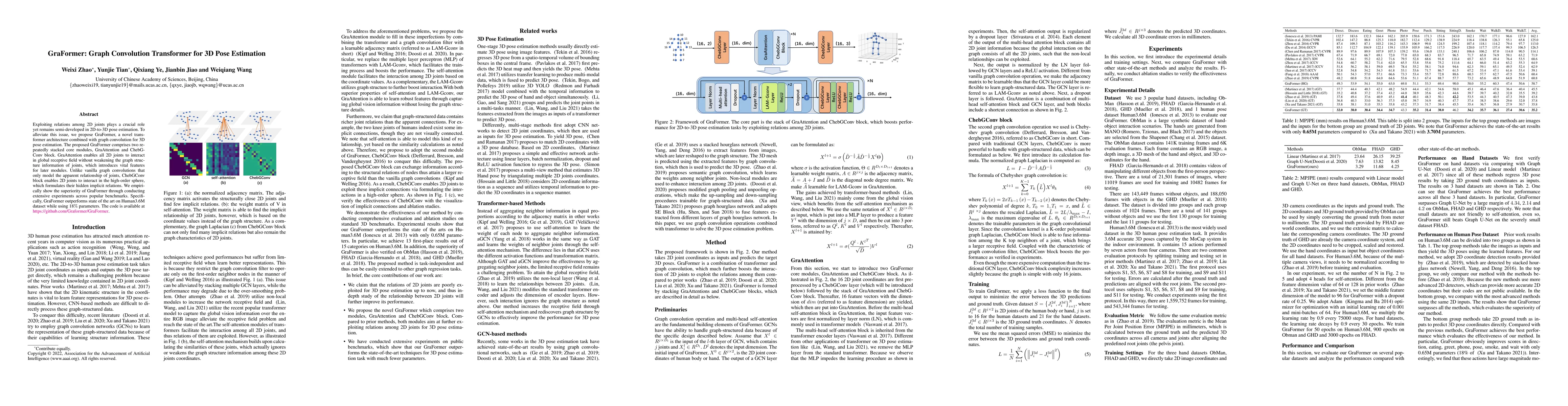 GraFormer proposes a novel transformer architecture that combines graph convolution to improve 3D pose estimation, outperforming state-of-the-art methods on the Human3.6M dataset.