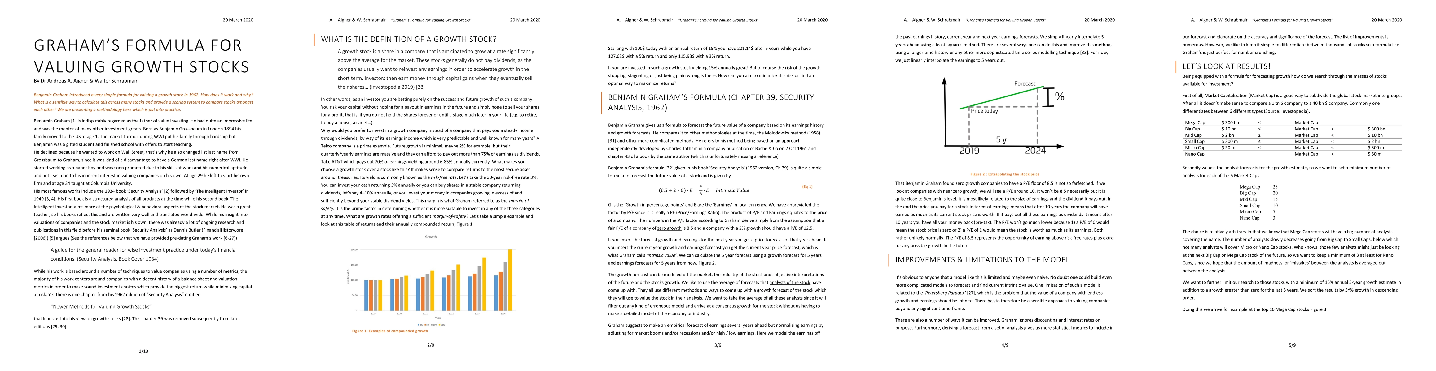 Benjamin Graham introduced a very simple formula for valuing a growth stock in 1962. How does it work and why? What is a sensible way to calculate this across many stocks and provide a scoring system to compare stocks amongst each other? We are presenting a methodology here which is put into practice.