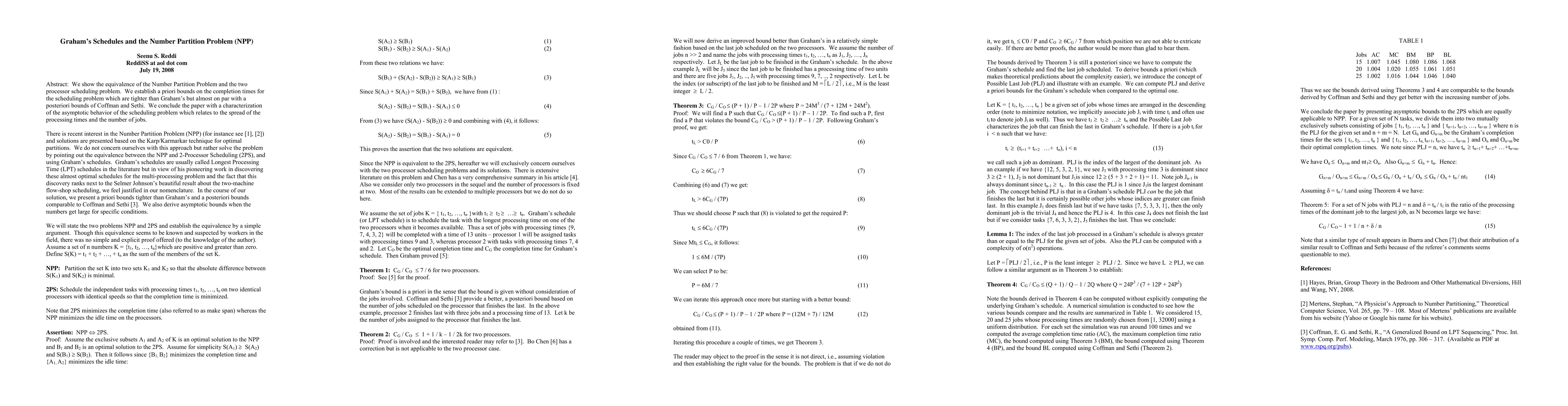 This paper equates Graham's Schedules with the Number Partition Problem and finds tighter a priori bounds on scheduling completion times than Graham's, while relating to processing time spread and job numbers.